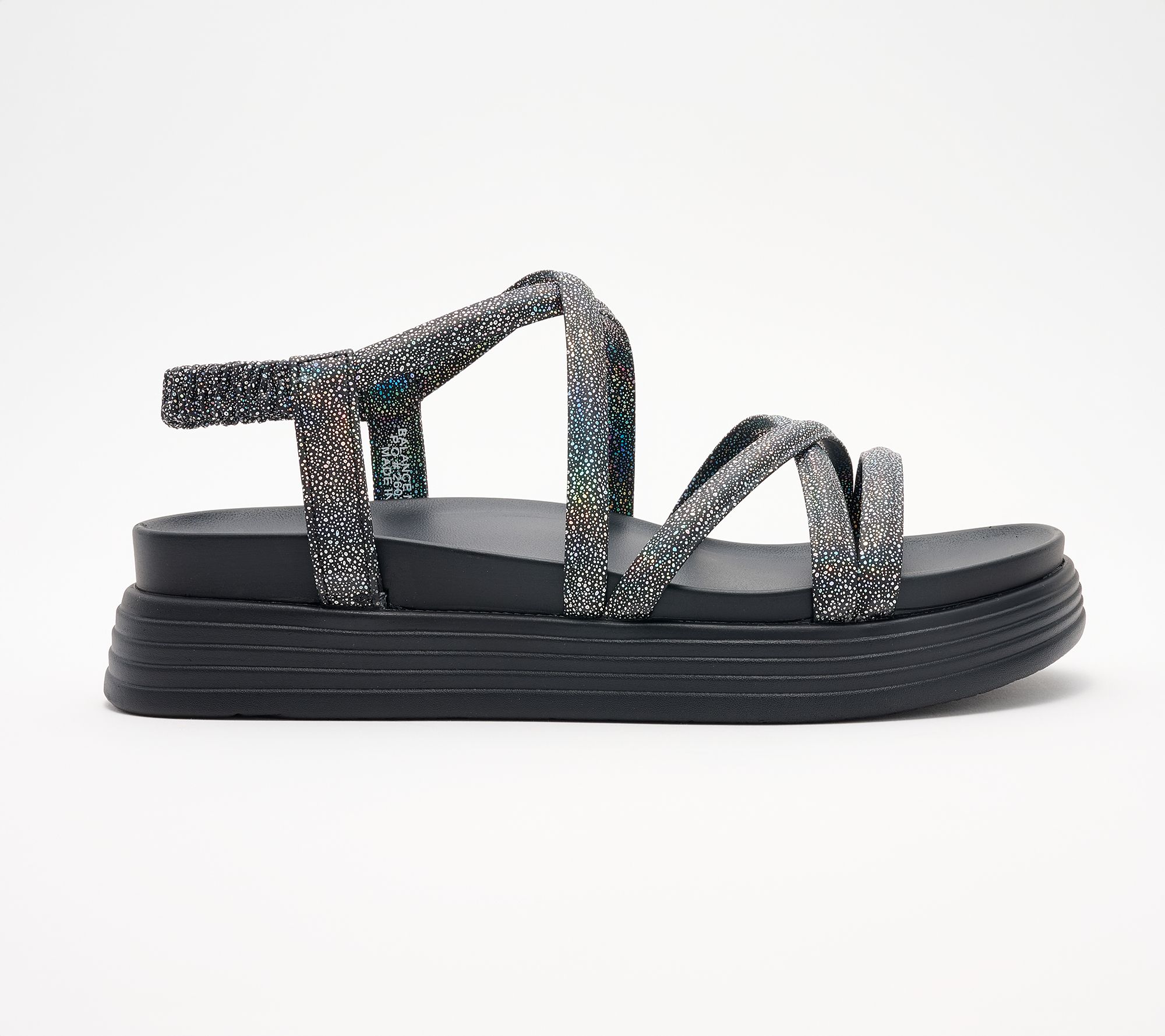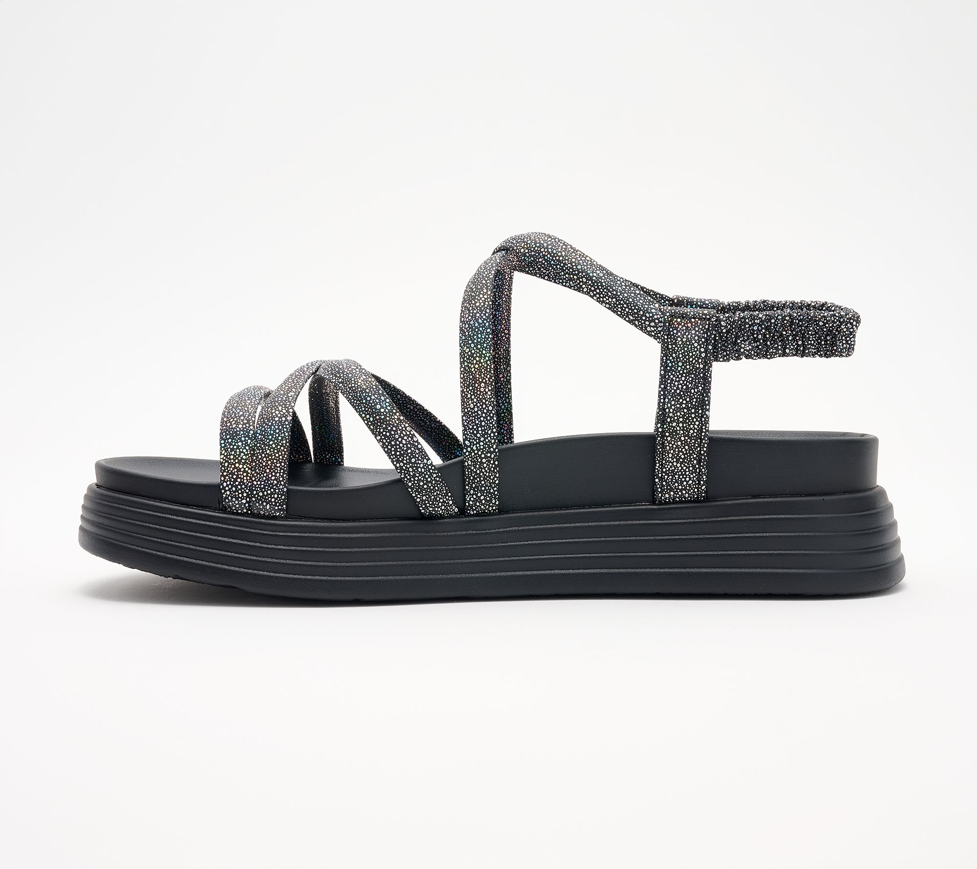 Elastic backstrap on slingback strap, platform design,