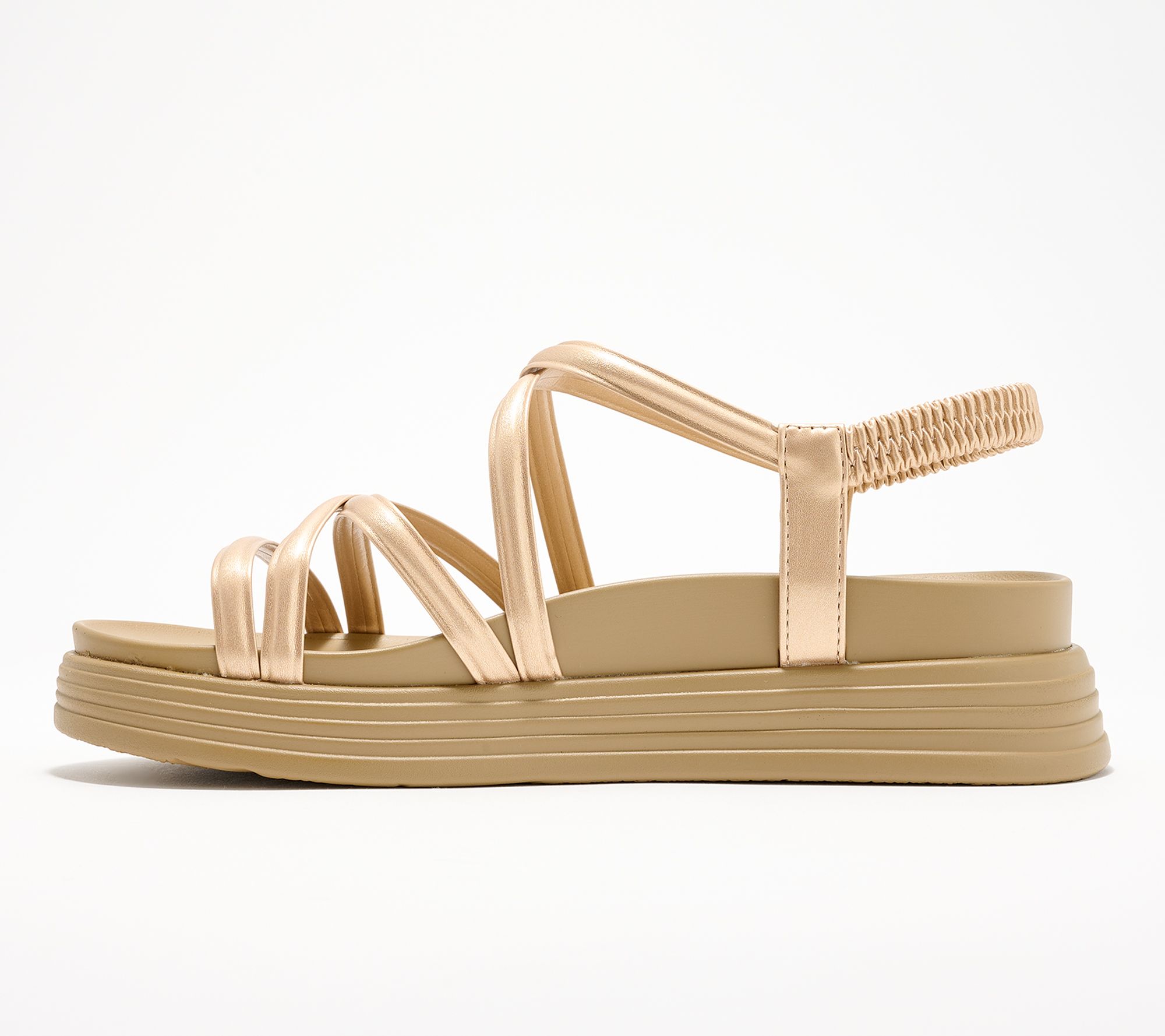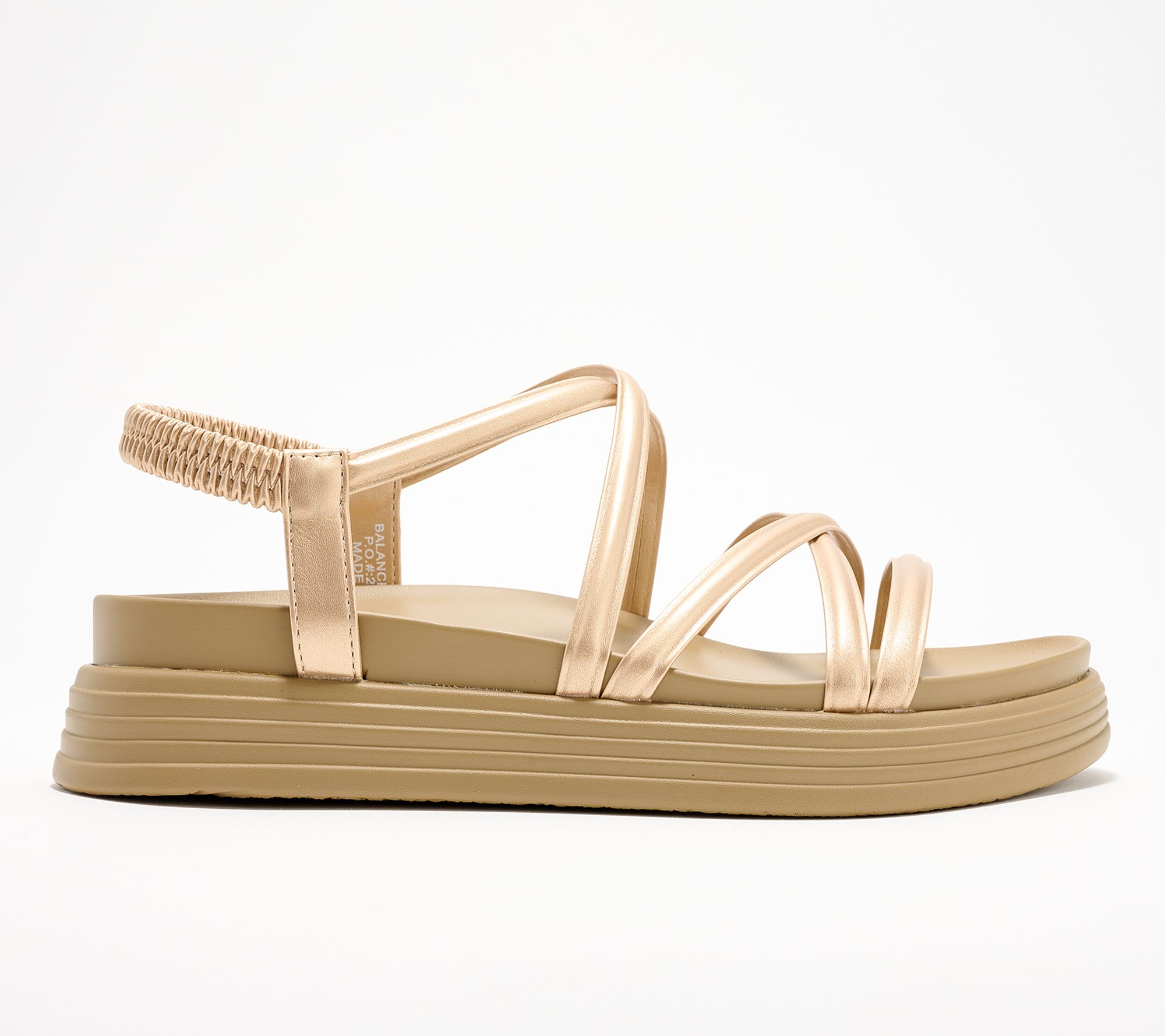 • Elastic backstrap, strappy design