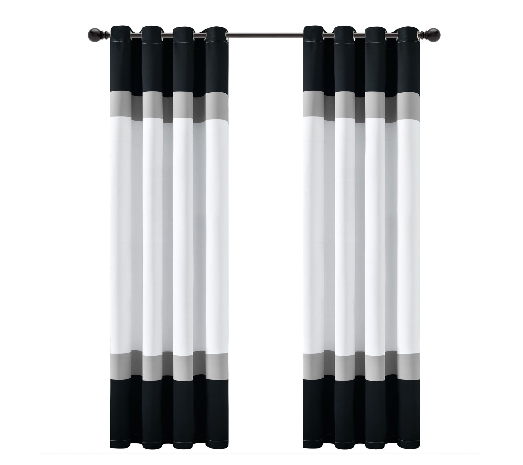 Bring sleek, modern style to your home with this pair of window panels, offering a sophisticated colorblock design that beautifully filters the sunlight. From Lush Decor.