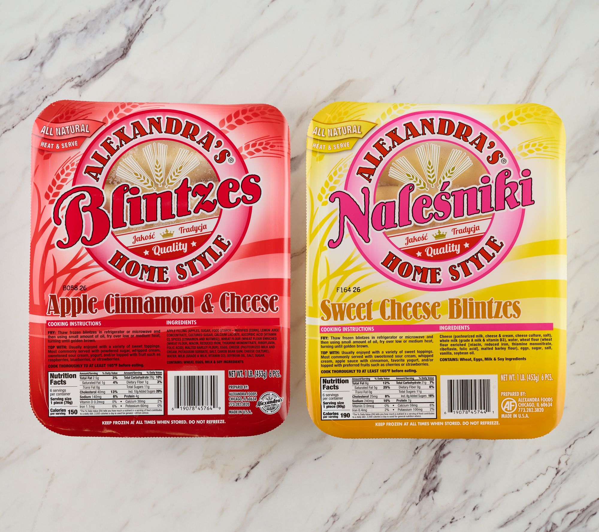 Warm your table with blintzes that blend sweet tradition and comfort -- just right for a leisurely brunch or a casual weeknight treat. Whether you bite into the apple cinnamon's soft pastry or savor the creamy sweet cheese filling, these versatile pastries invite you to share and enjoy. Serve them with fruit, drizzle them with syrup, or enjoy as they are. From Alexandra's.