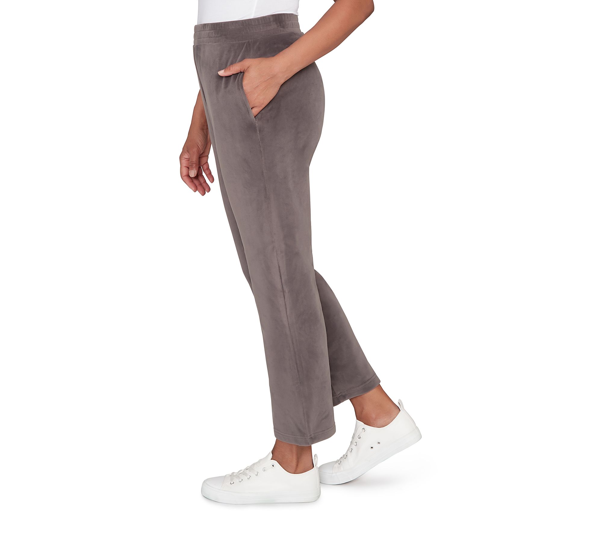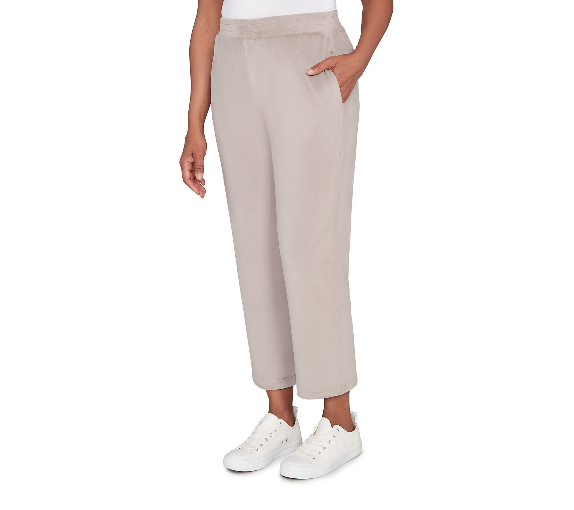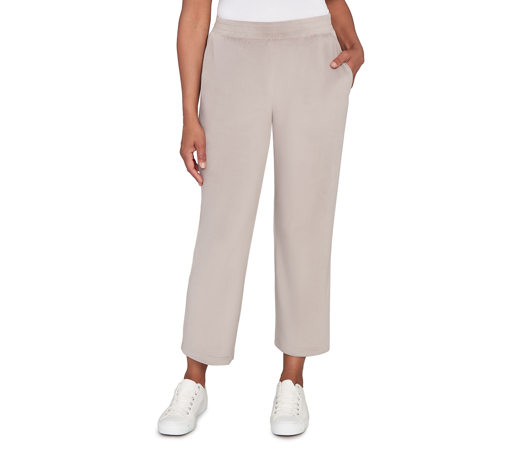 Enjoy effortless style and comfort wherever your day takes you in these full-length pants. The soft double-faced knit and smooth elastic waistband make them an easy choice for morning errands or evenings out, while hidden side pockets keep essentials close and the shorter length creates a sleek silhouette. From Alfred Dunner.