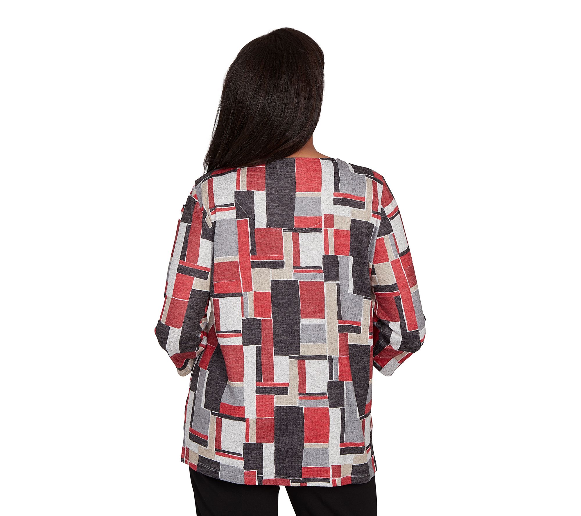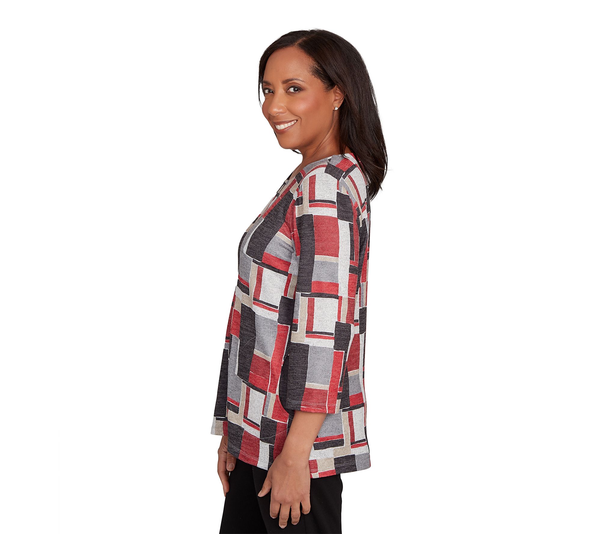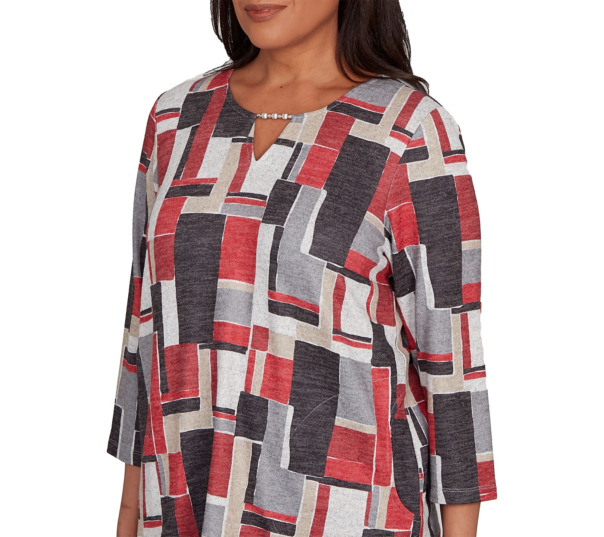 Soft knit meets stand-out style in this petite blouse, ideal for brunch with friends or a relaxing afternoon at home. The playful colorblock design pairs beautifully with your favorite jeans, while front pockets and a split beaded neckline add an effortless touch of elegance to your everyday. From Alfred Dunner.