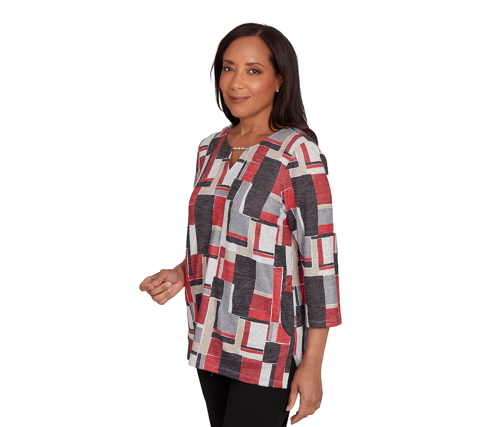 Alfred Dunner Petite Colorblock Split Beaded Neck Top