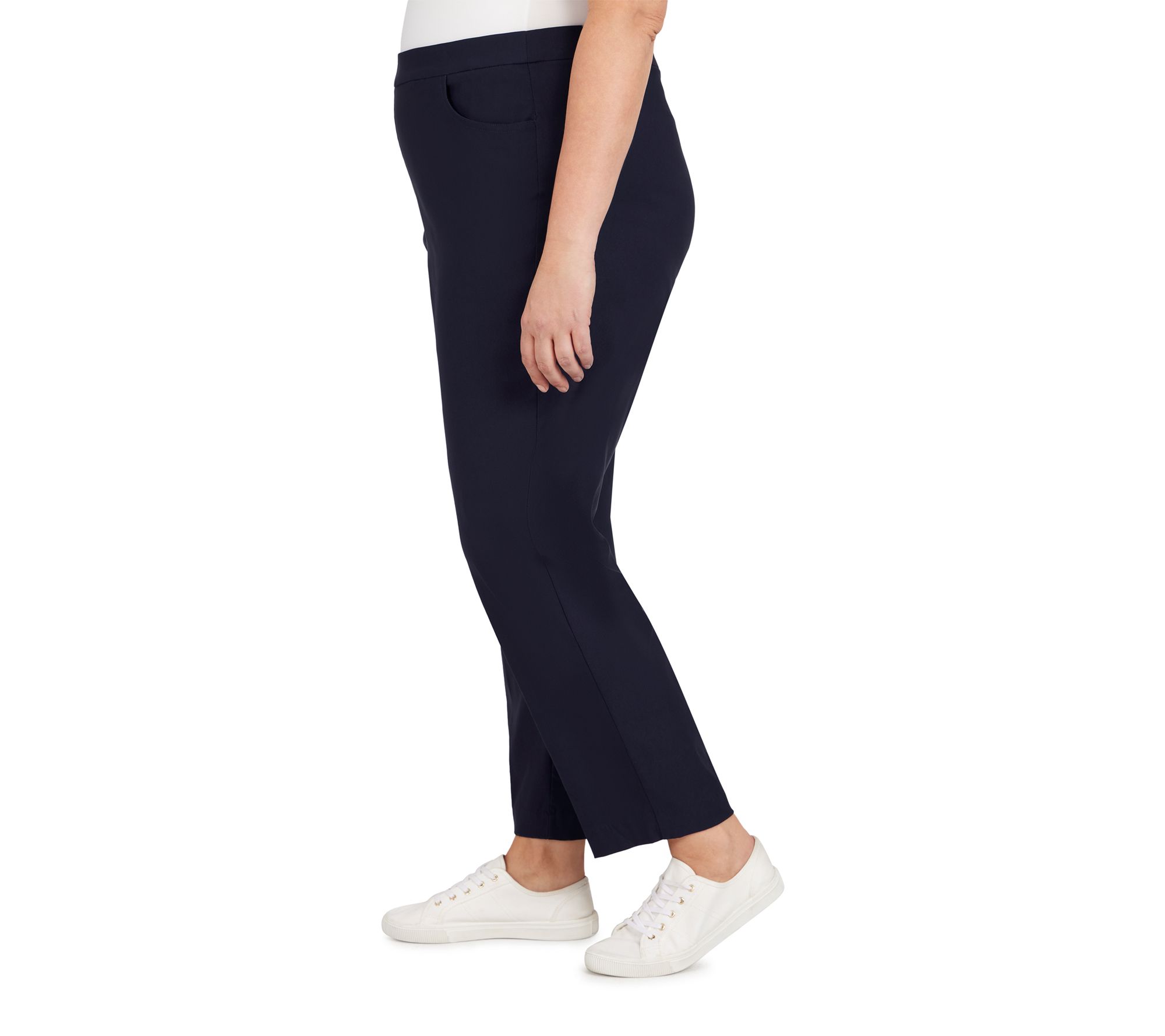 Whether you're heading to brunch with friends or tackling a busy day at the office, these pants offer a flattering silhouette and all-day comfort. The tummy control feature provides a smooth look, while the stretch fabrication moves with you, making them a versatile choice for any occasion. From Alfred Dunner.