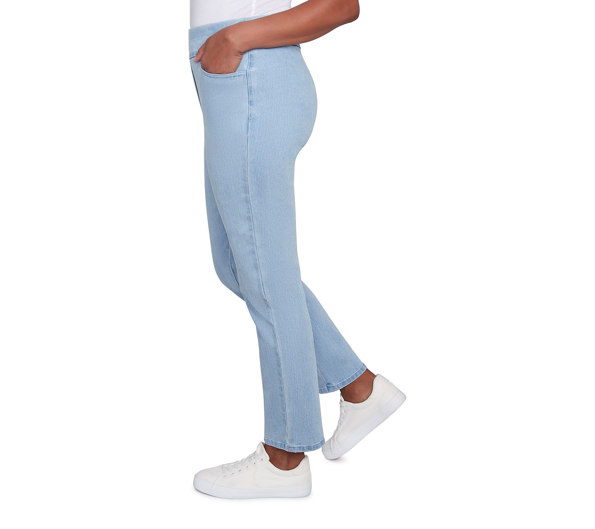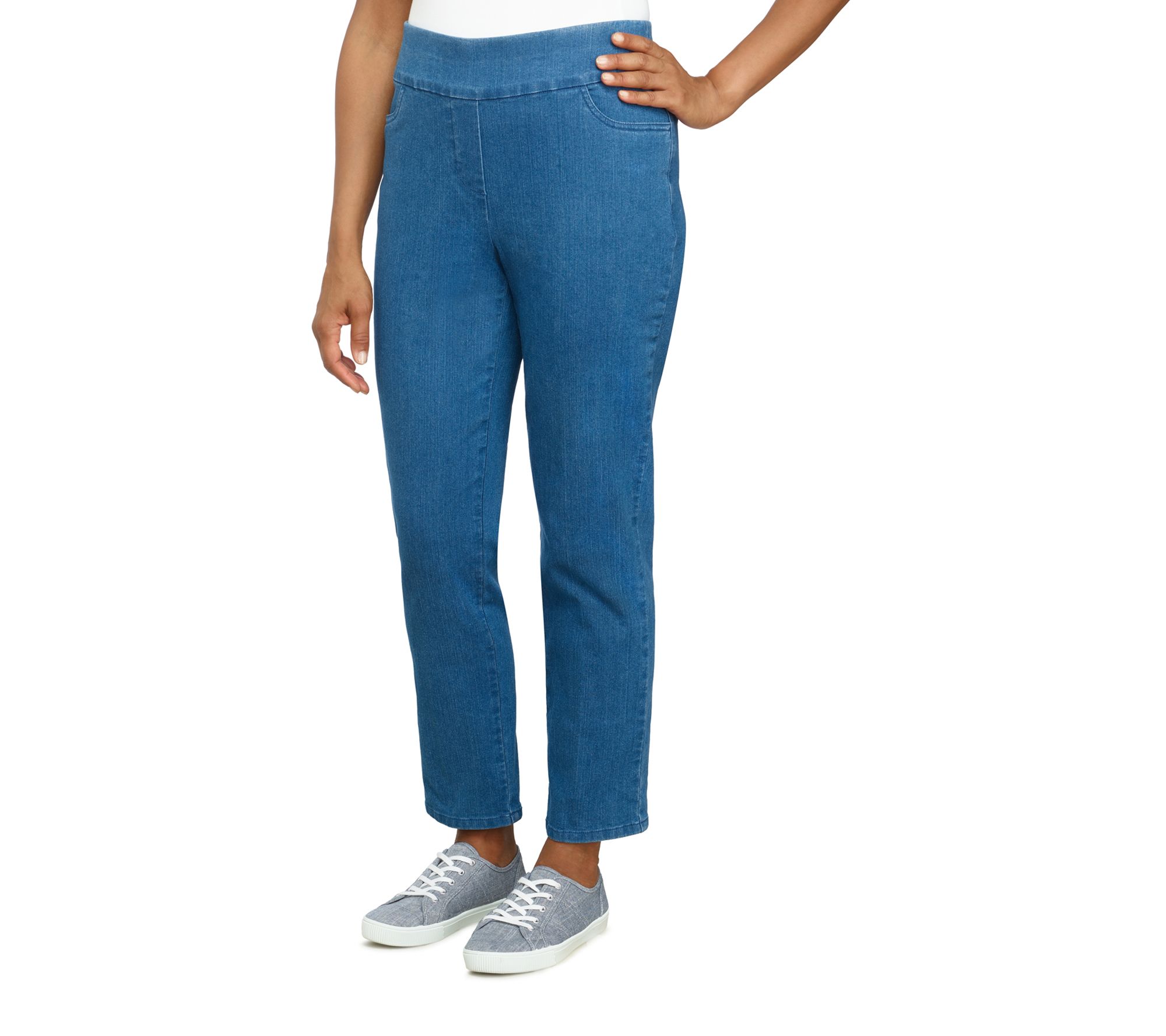 Slip into effortless style and comfort with these denim pants, designed to move with you throughout your day. The super-stretch fabrication delivers a flattering fit whether you're heading to brunch with friends or running errands, while classic denim details keep your look timeless and versatile. From Alfred Dunner.