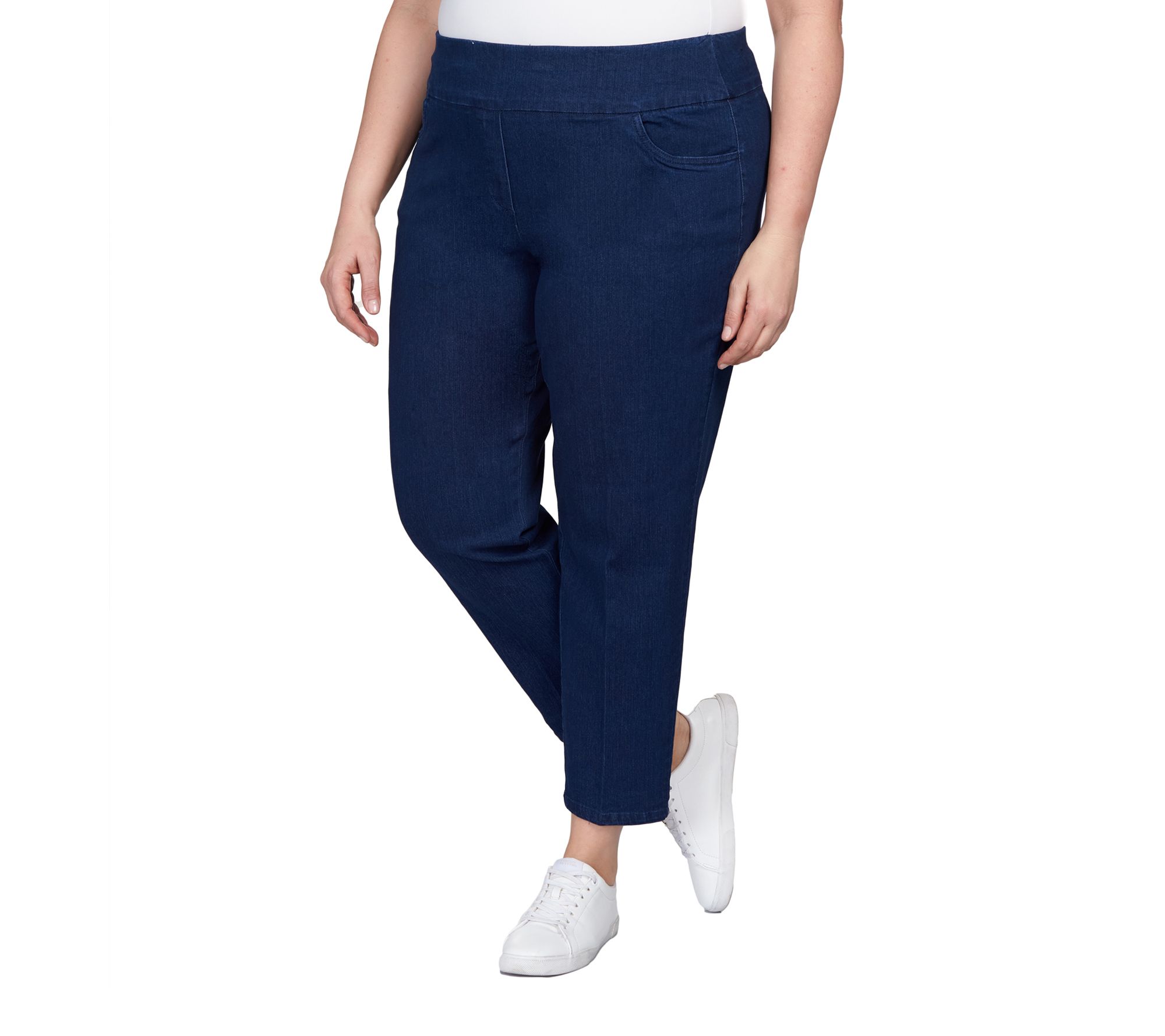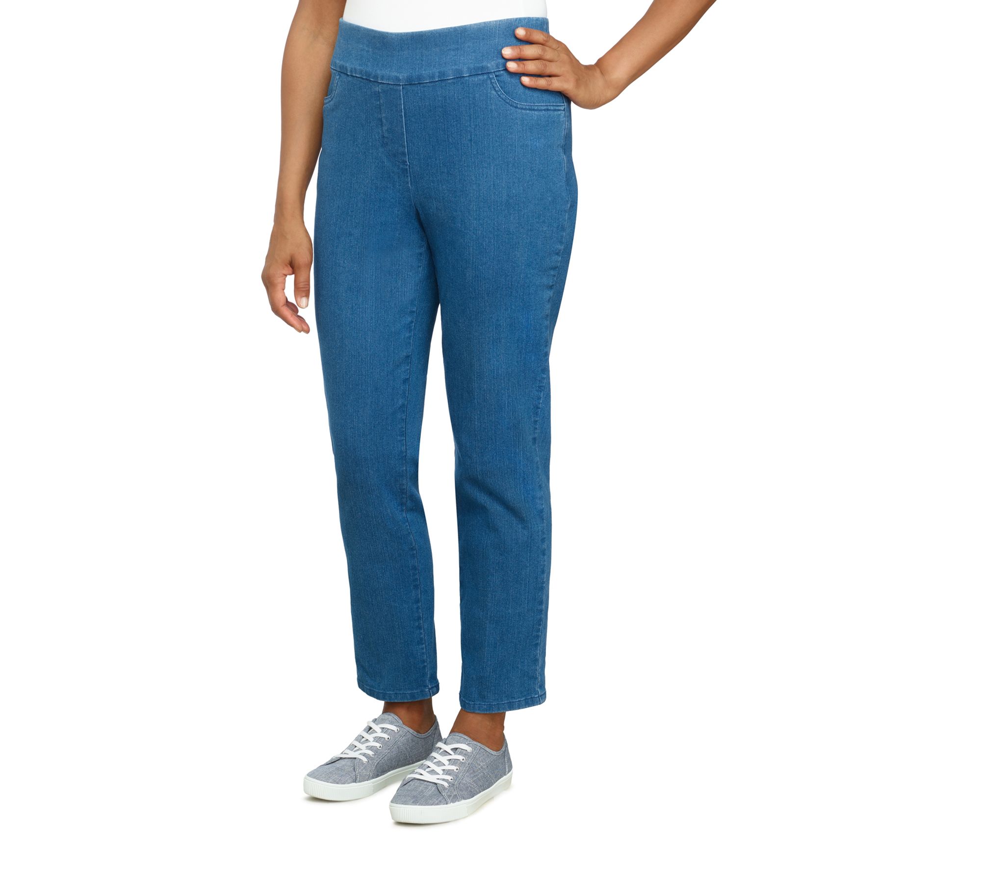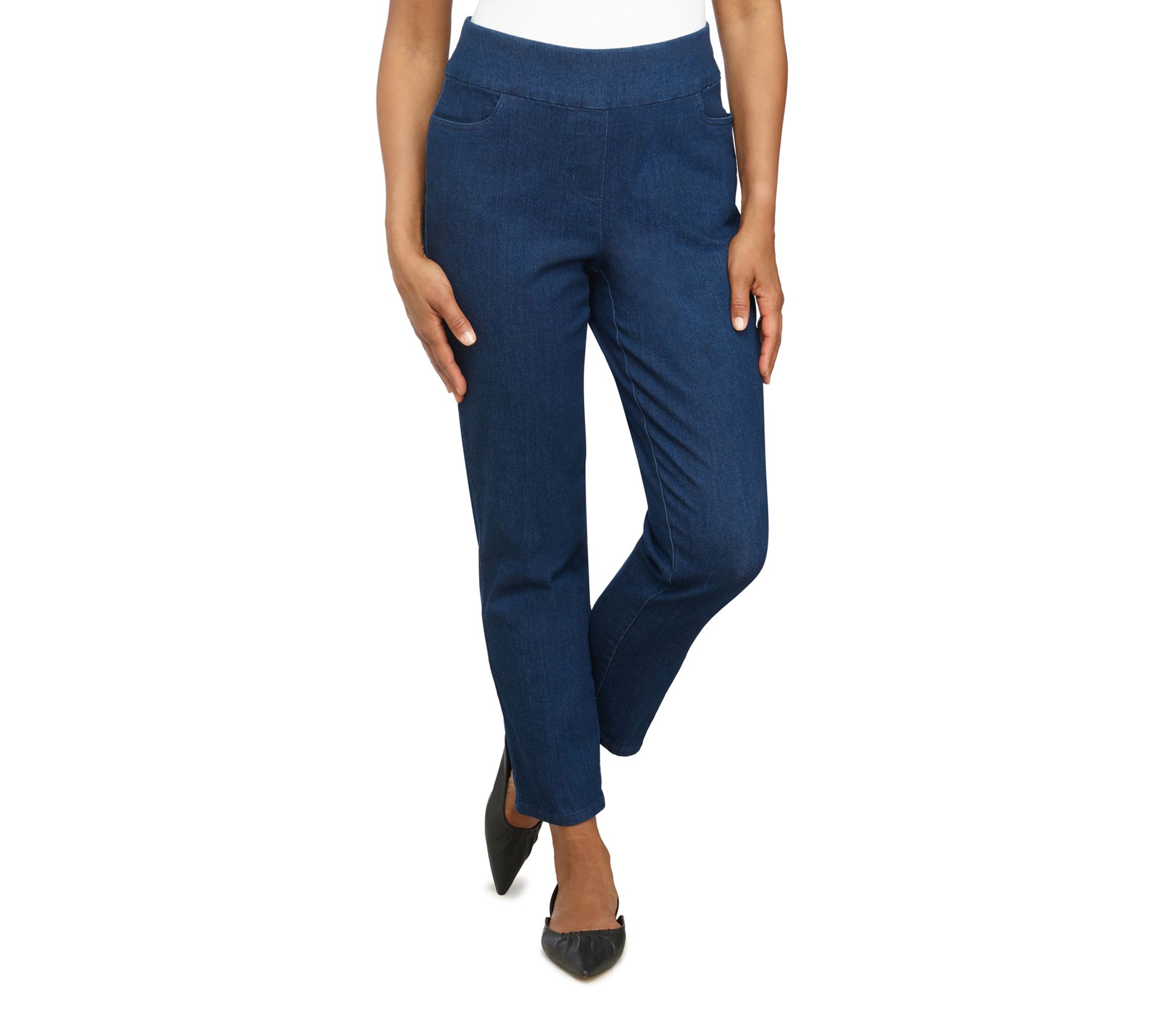 Slip into these super-stretch denim pants and enjoy all-day comfort whether you're running errands or meeting friends for lunch. The short length pairs easily with your favorite sneakers or flats, while the flattering fit moves with you for effortless style. From Alfred Dunner.