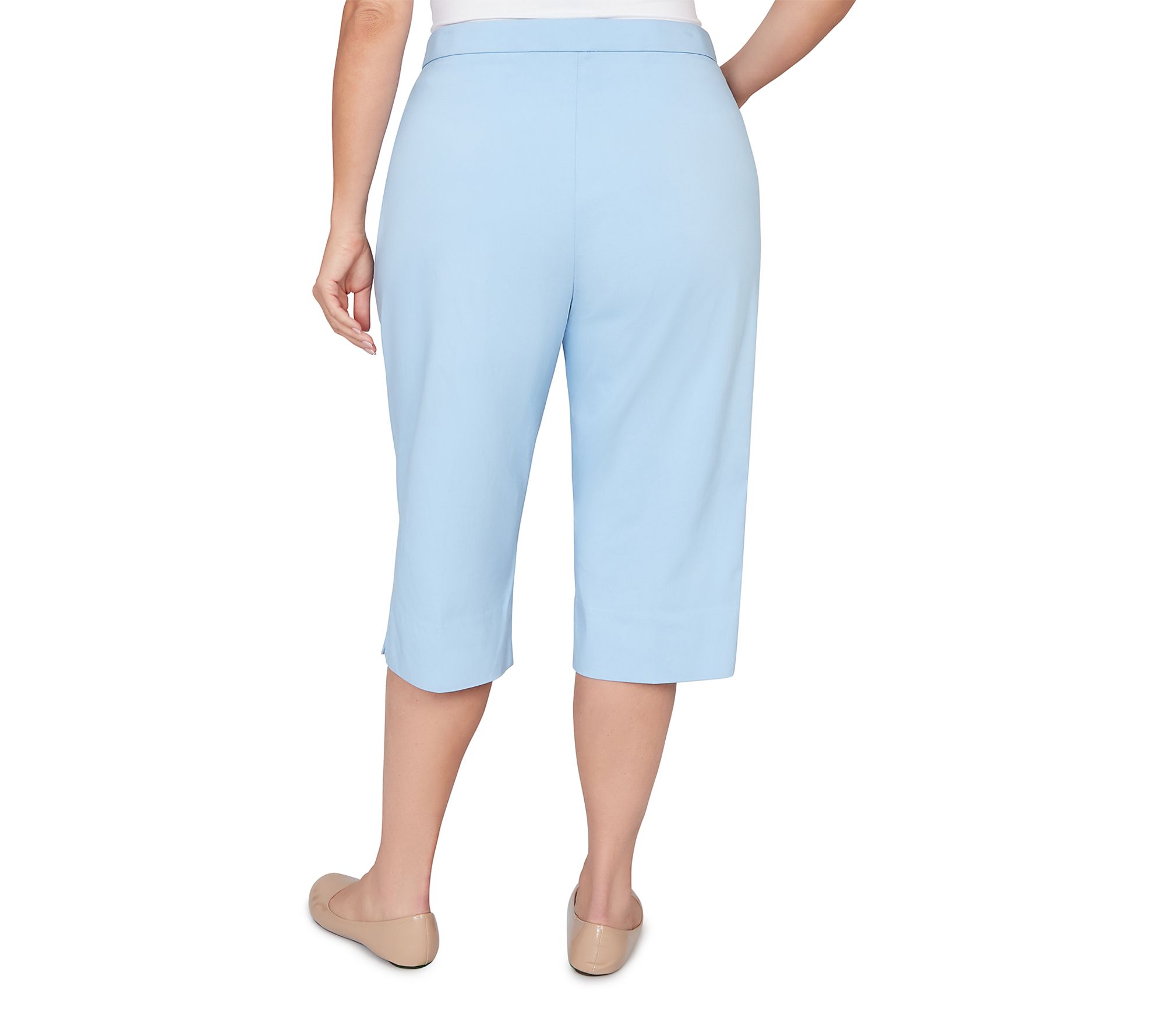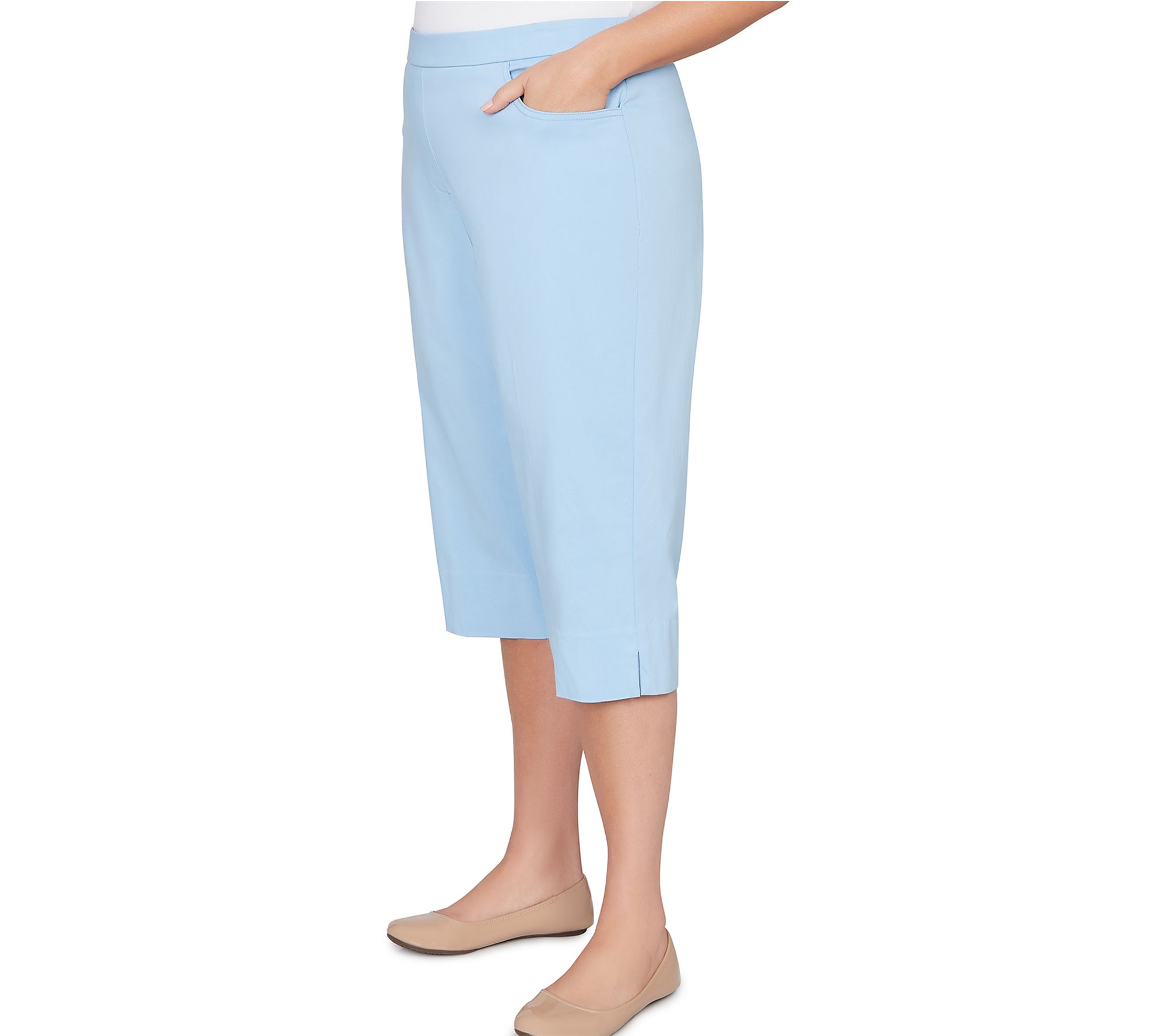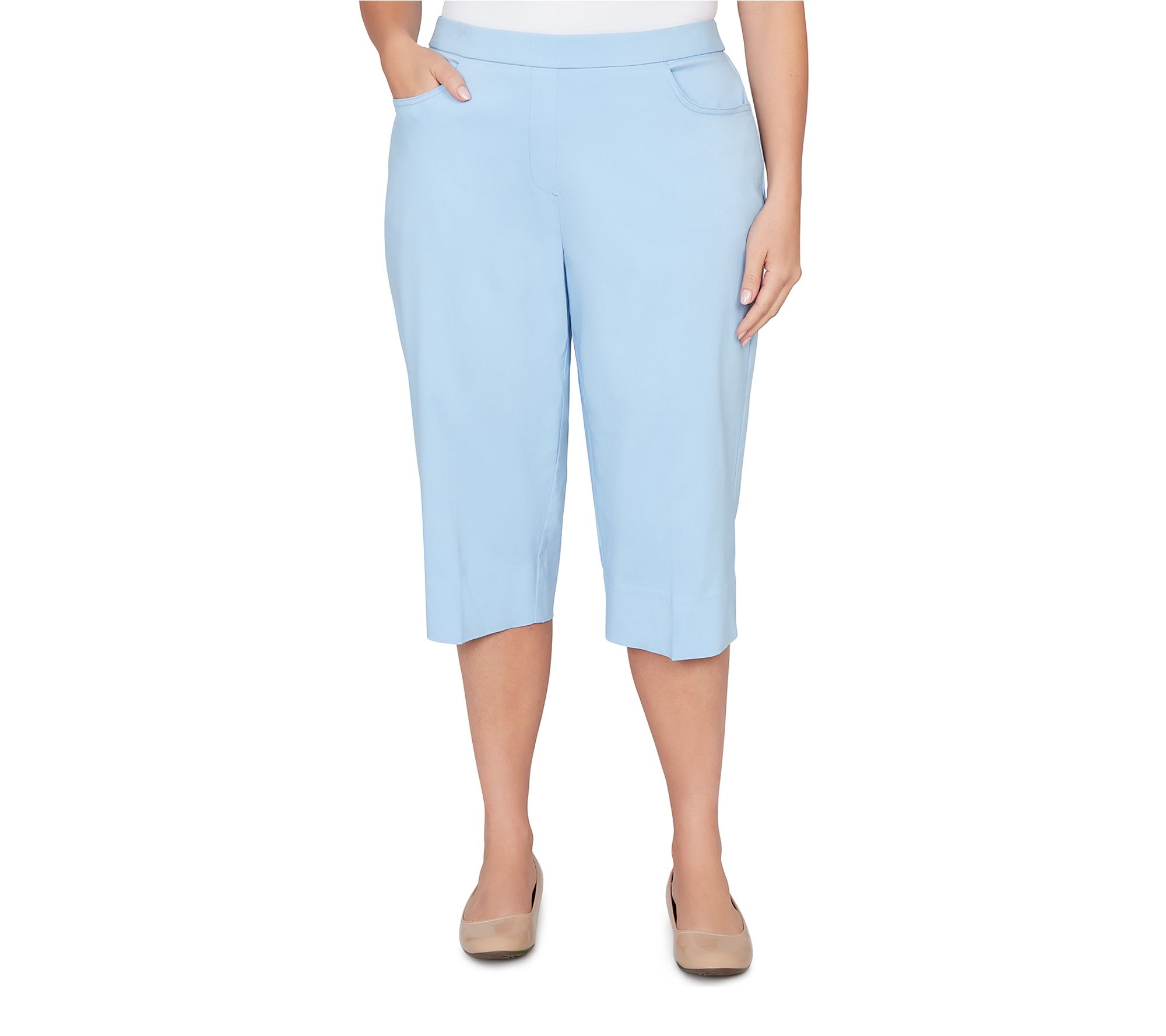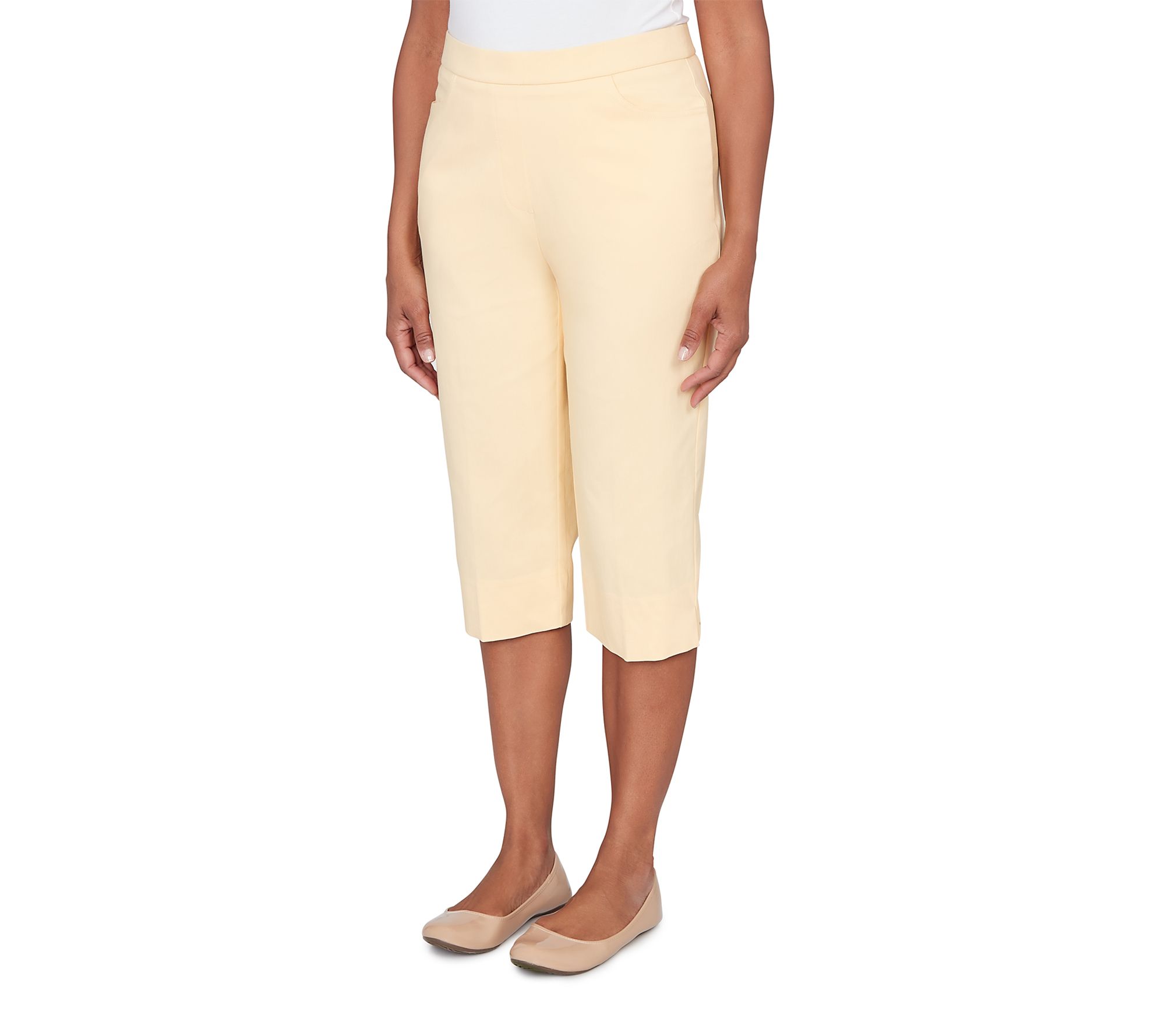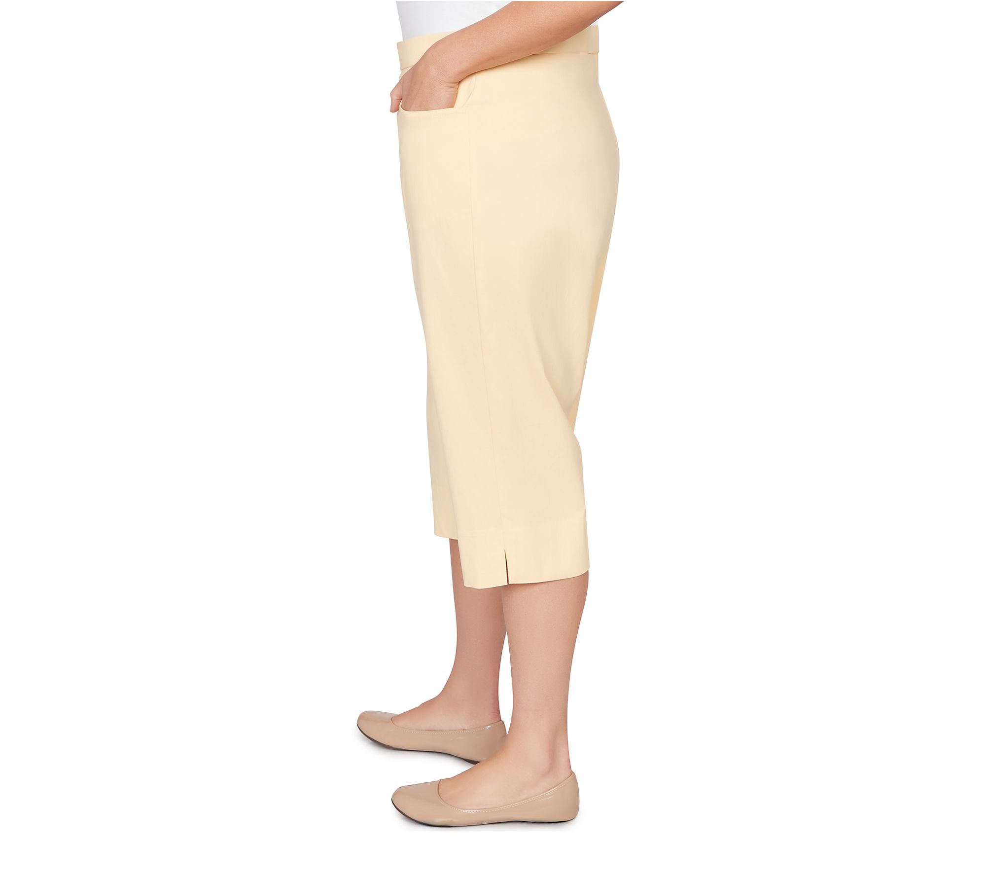Slip into a pair of clamdigger pants that bring effortless polish and cheerful color to your warm-weather wardrobe. The smooth flat front and comfortable stretch make every outing -- whether brunch with friends or a stroll through the park -- a little brighter, while the Allure Fit flatters with style designed for both ease and confidence. From Alfred Dunner.