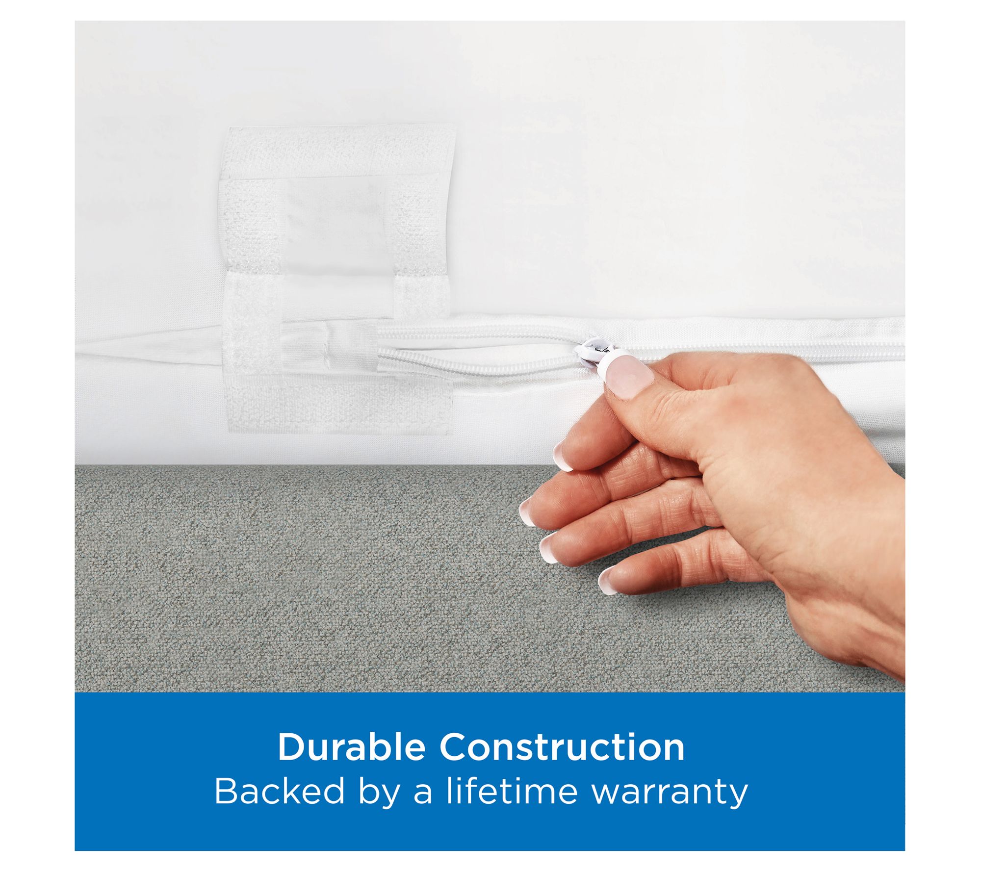 Help shield your mattress from wear and tear with the AllerEase Maximum mattress protector. This queen-sized protector offers a blend of polyester and nylon fabric that fully encases your mattress. From AllerEase.