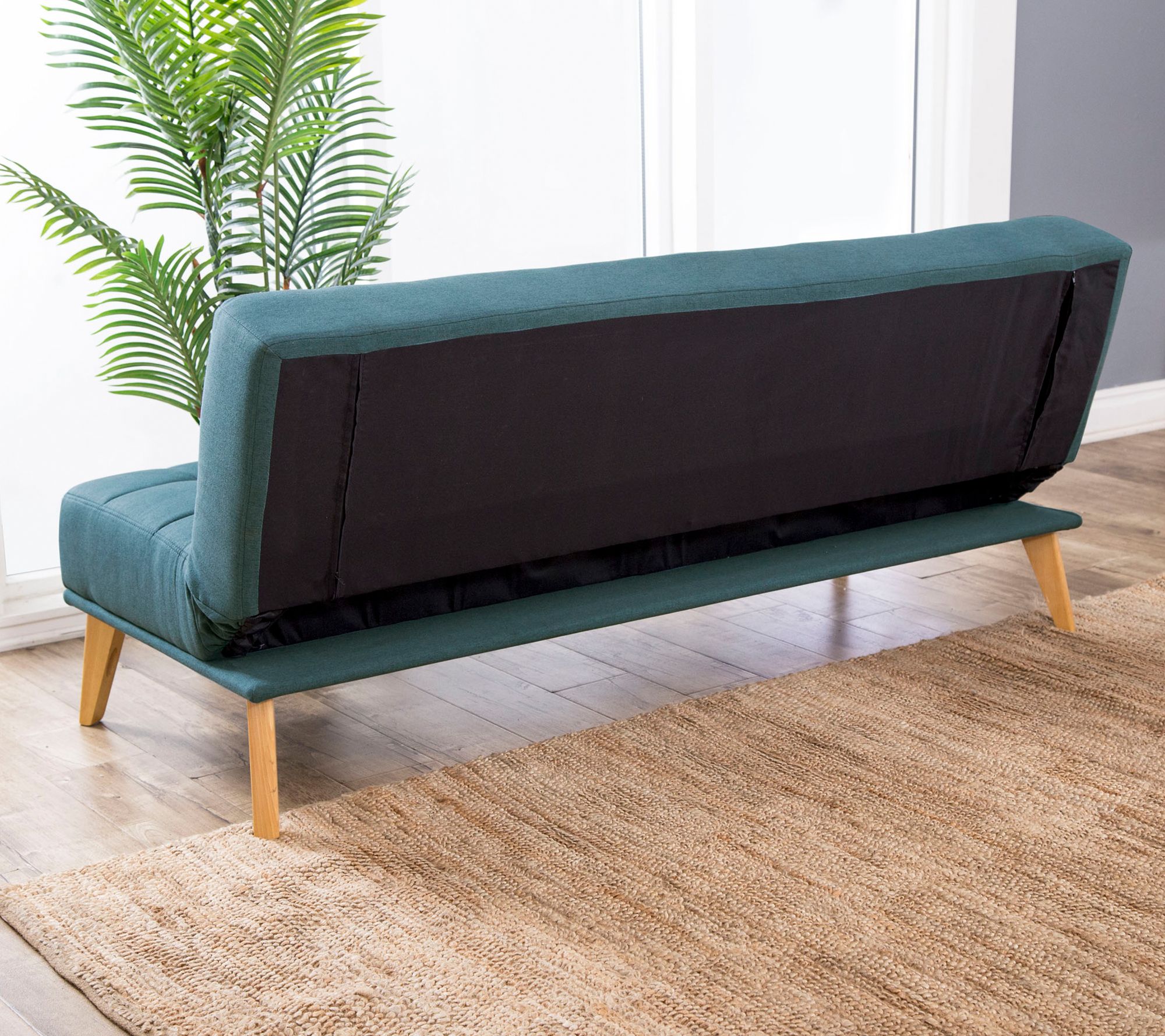 • Converts to bed; quilted seat and back; two supporting legs in the back