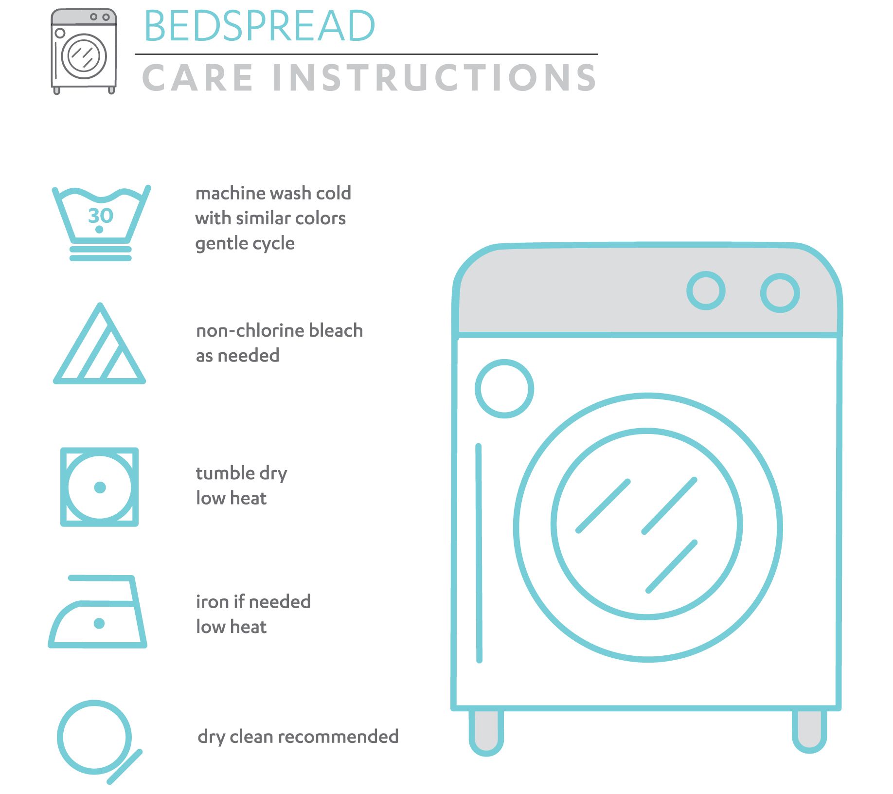 • Full sized: Bedspread 75"H x 54"W with a 30" drop; Shams 20" x 26" with a 2" ruffle