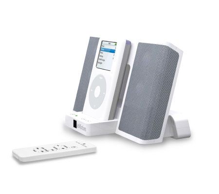 The perfect companion for your iPod. The IM3C portable speaker system delivers a full spectrum of pure, distinct sound. Just place your iPod into the built-in docking station; the wireless remote lets you sit back and enjoy. iPod (shown) not included. From Altec Lansing.