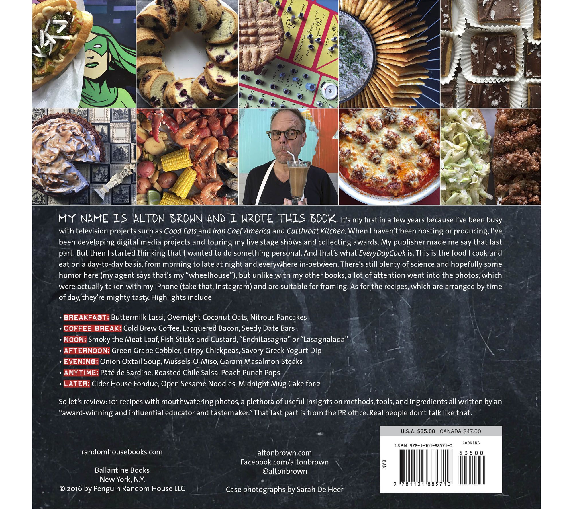 Alton Brown gets personal with the first new cookbook he's authored in five years. Alton Brown: EveryDayCook includes 102 recipes that Alton prepares for himself. Dishes with names that reflect Alton's humor and personality, and are sure to be every bit as flavorful, like My Big Fat Greek Chicken Salad, BBQ Potato Chips, St.Louis Ribs, The General's Fried Chicken, and Smoky the Meatloaf.