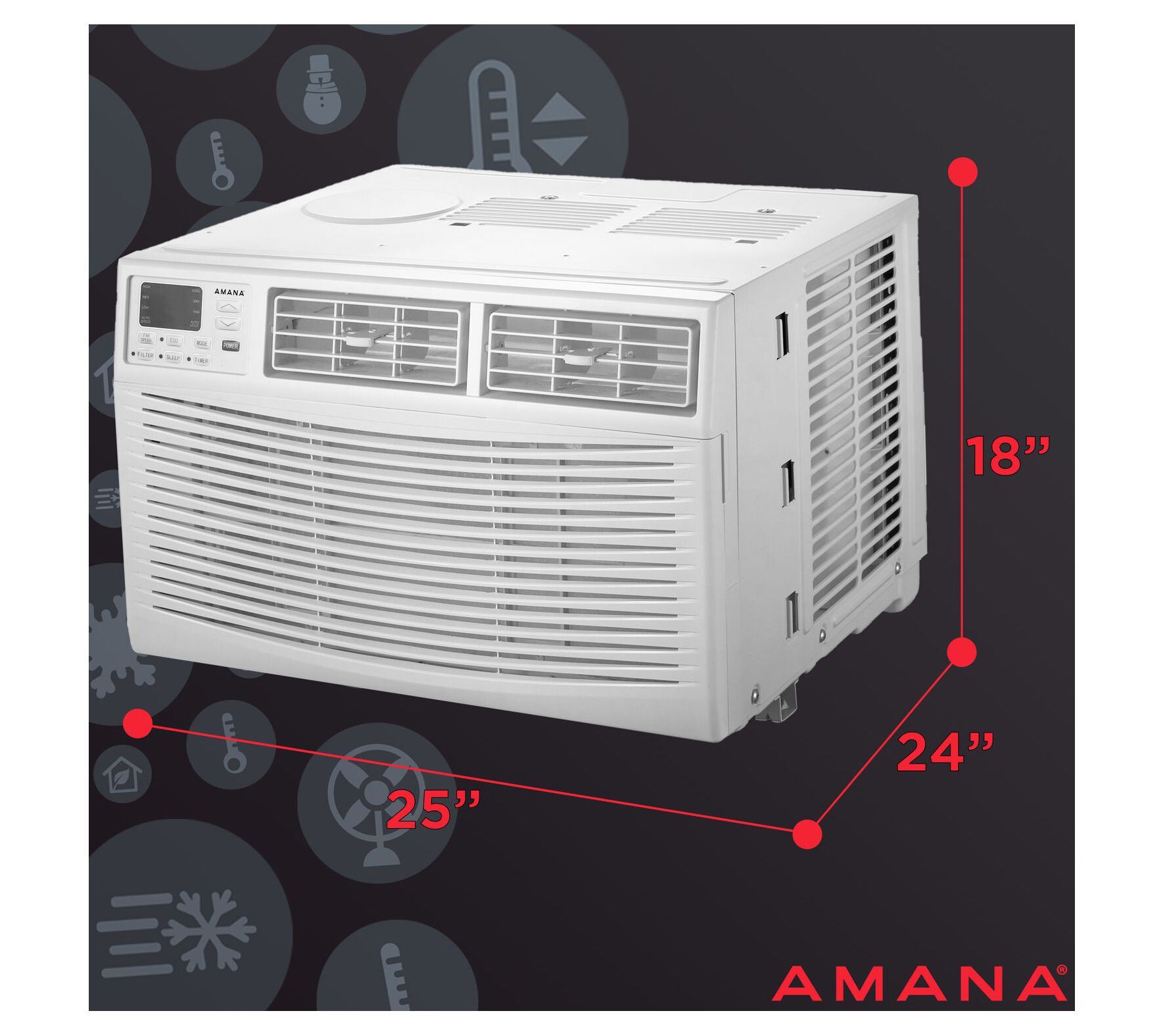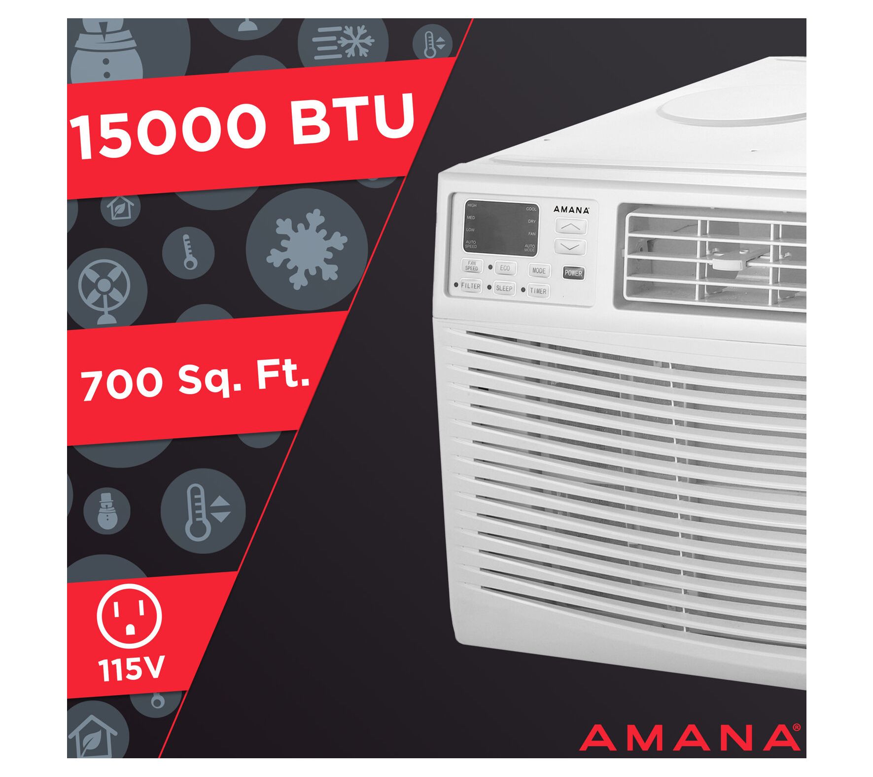Imagine stepping into your cool, refreshing home on a sweltering summer day. This Amana window-mounted air conditioner brings that relief with its powerful cooling capabilities. Ideal for large rooms, it offers three cooling speeds and a programmable timer for seamless comfort around your schedule. The sleep mode helps provide peaceful nights without overheating worries, and with a washable air filter, maintenance is a breeze. From Amana.