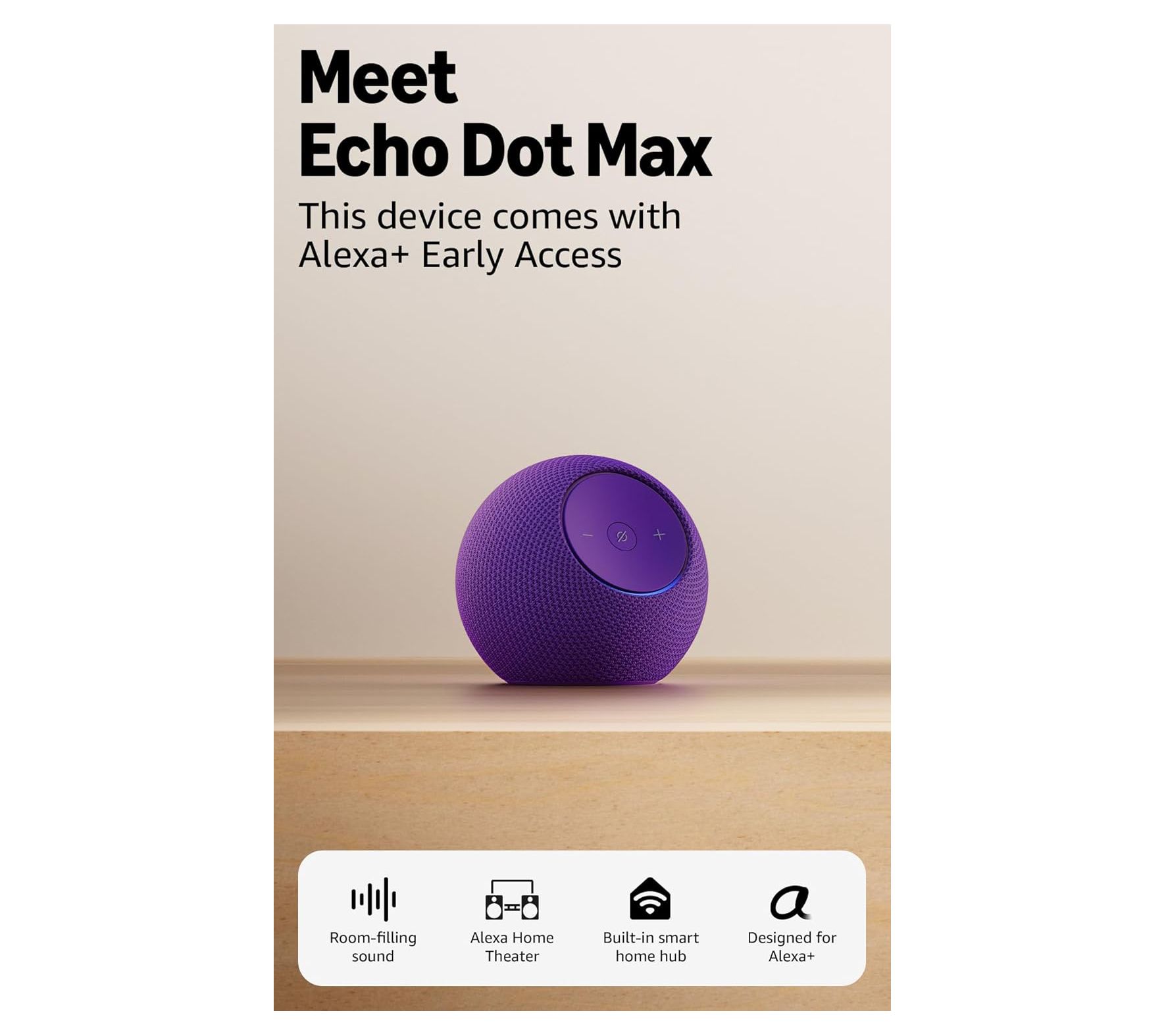 Mornings start brighter and evenings feel more relaxed when your favorite playlists fill the room with immersive, dynamic sound from the Echo Dot Max smart speaker. Pair it with compatible devices to set up a seamless home theater system or create custom routines that transform your home's atmosphere -- all with a simple voice command. Smart home hub features and Alexa+ Early Access put voice control at the center of your everyday. From Amazon.