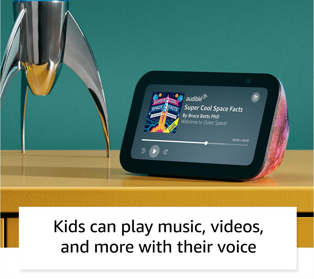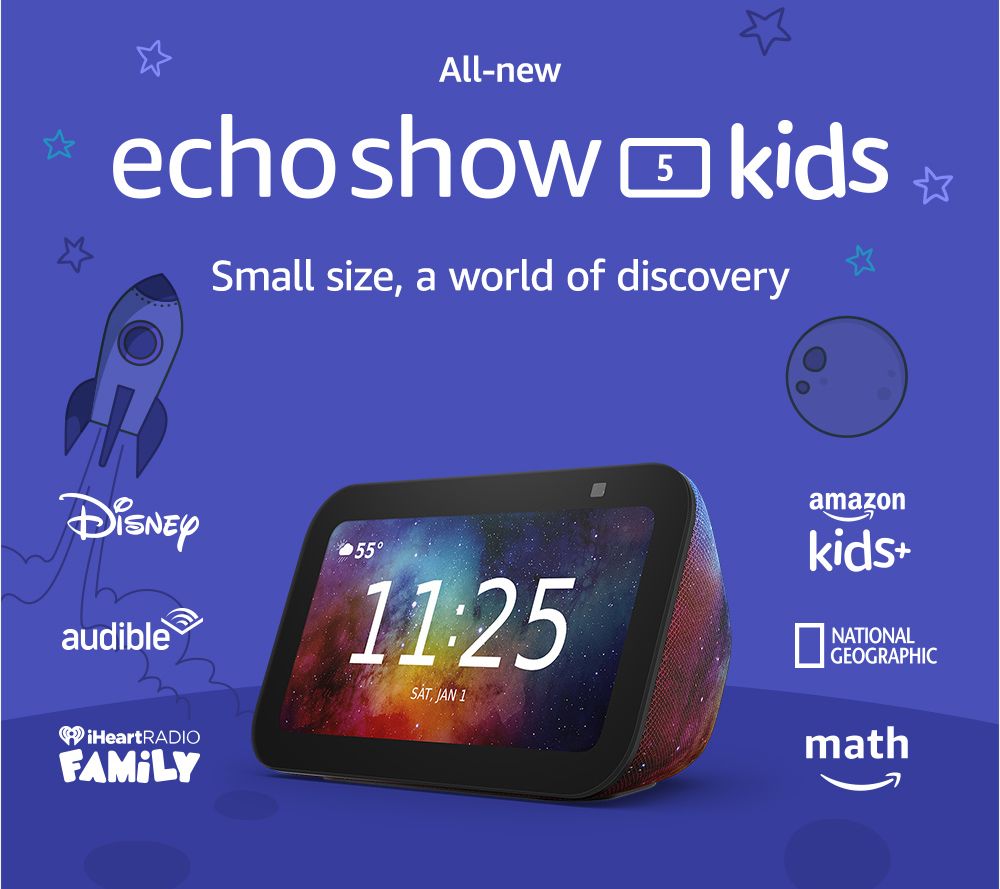 Built to learn, play, and explore, the third-gen Amazon Kids Echo Show 5 provides kid-friendly fun alongside peace of mind for parents. Simple to set-up, your little ones will be able to ask for homework help, play music or audiobooks, create bedtime routines, and even make calls to approved contacts. From Amazon.
