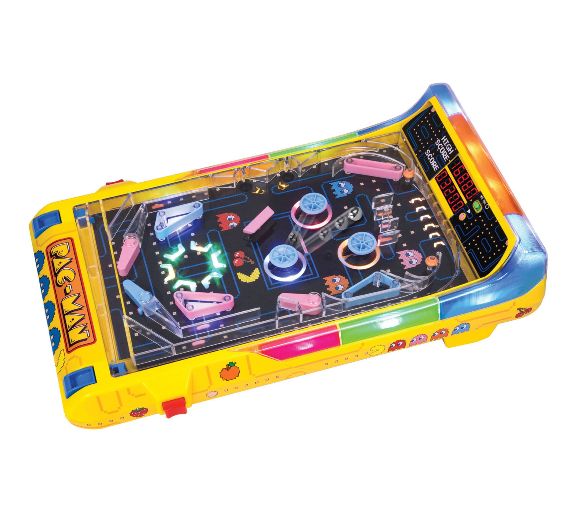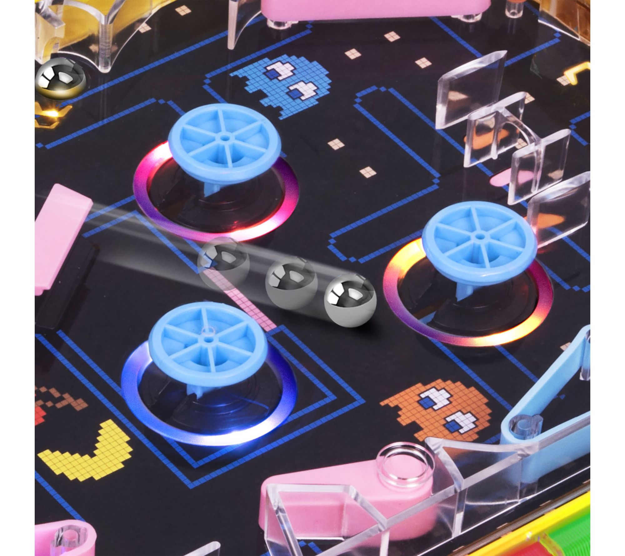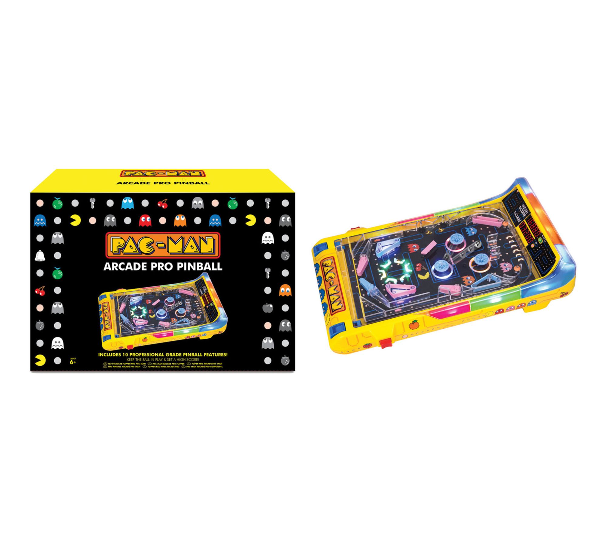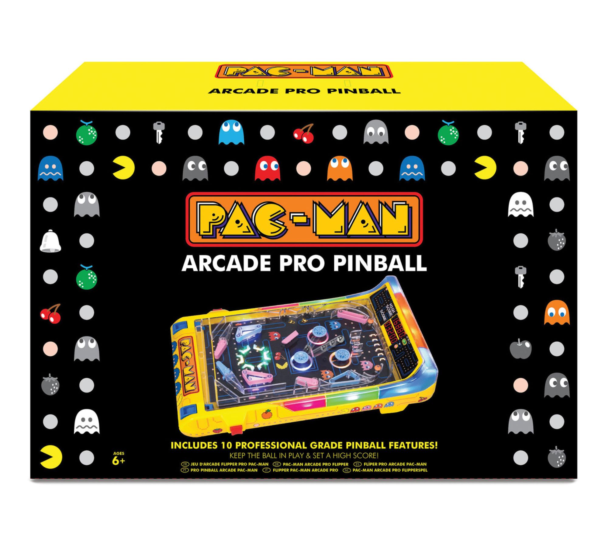 Bring arcade thrills right to your home with this Pac-Man Arcade Pro Pinball. Featuring interactive lights and authentic sound effects, this tabletop pinball machine lets family and friends compete for top scores in lively game nights. Enjoy all the flashing action and classic Pac-Man vibes in a compact design that fits on any table. From Ambassador Games.