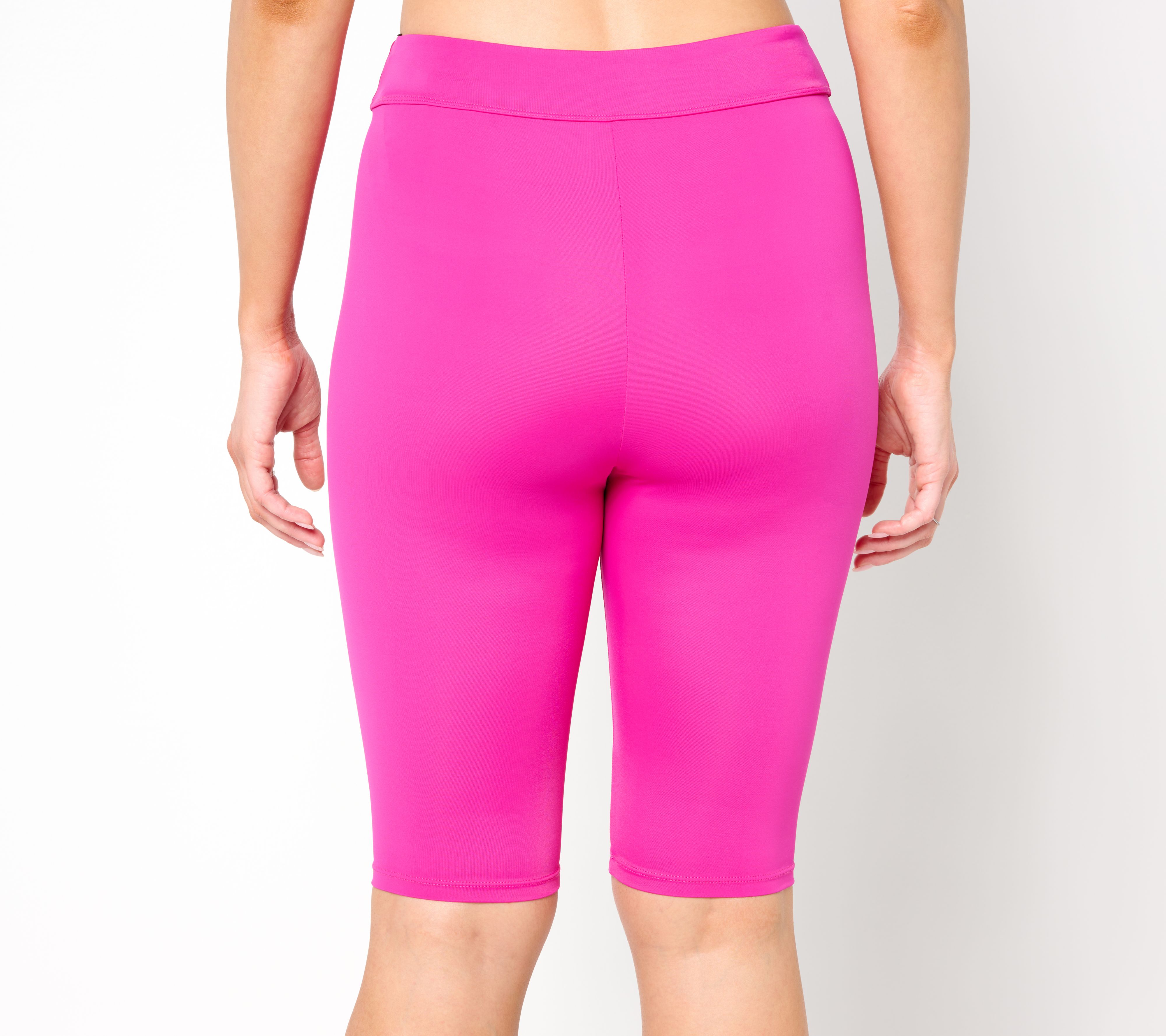 - Features: slim leg, folded self waistband with encased non-roll flat elastic, hidden gusset, UPF 50