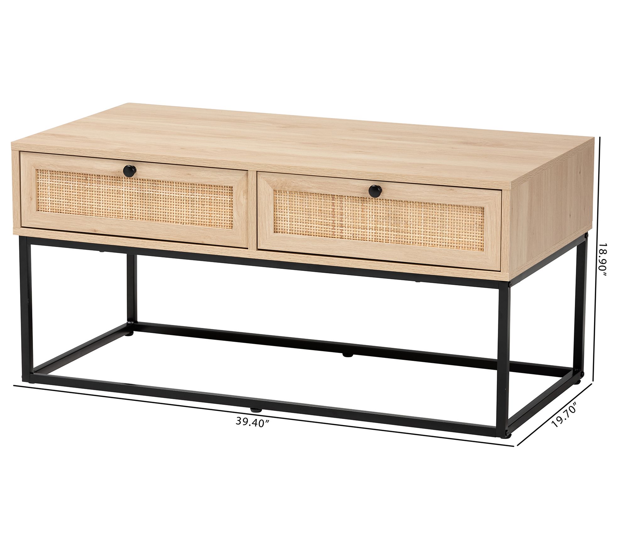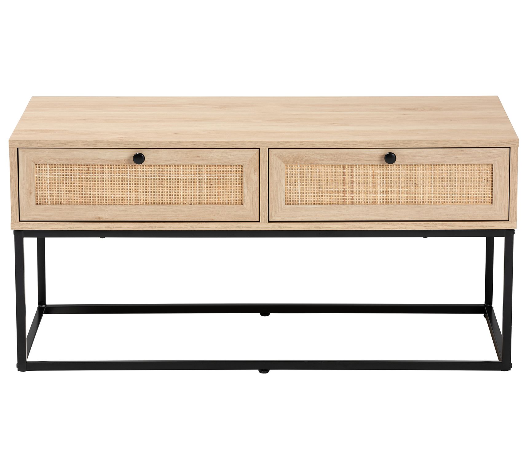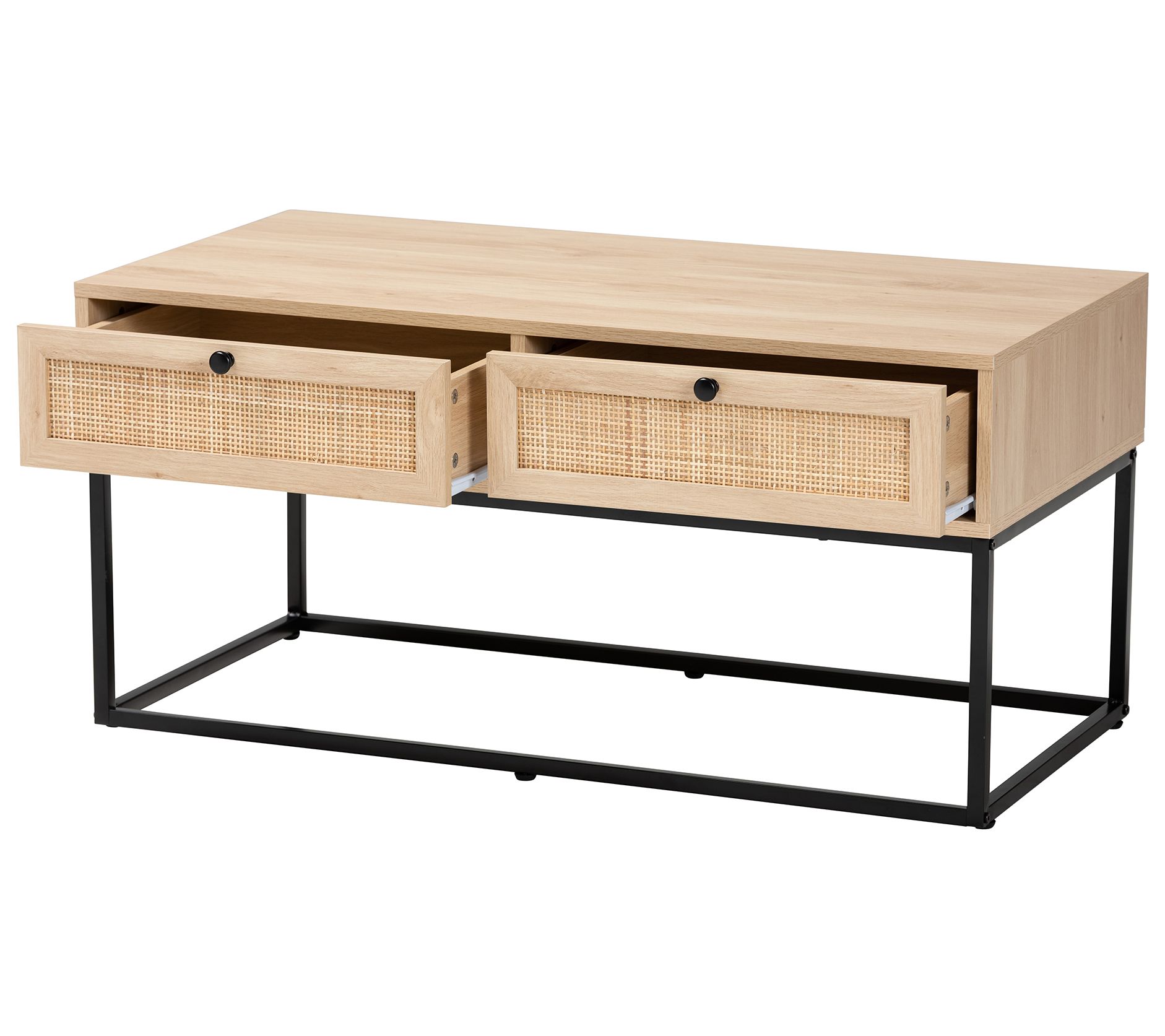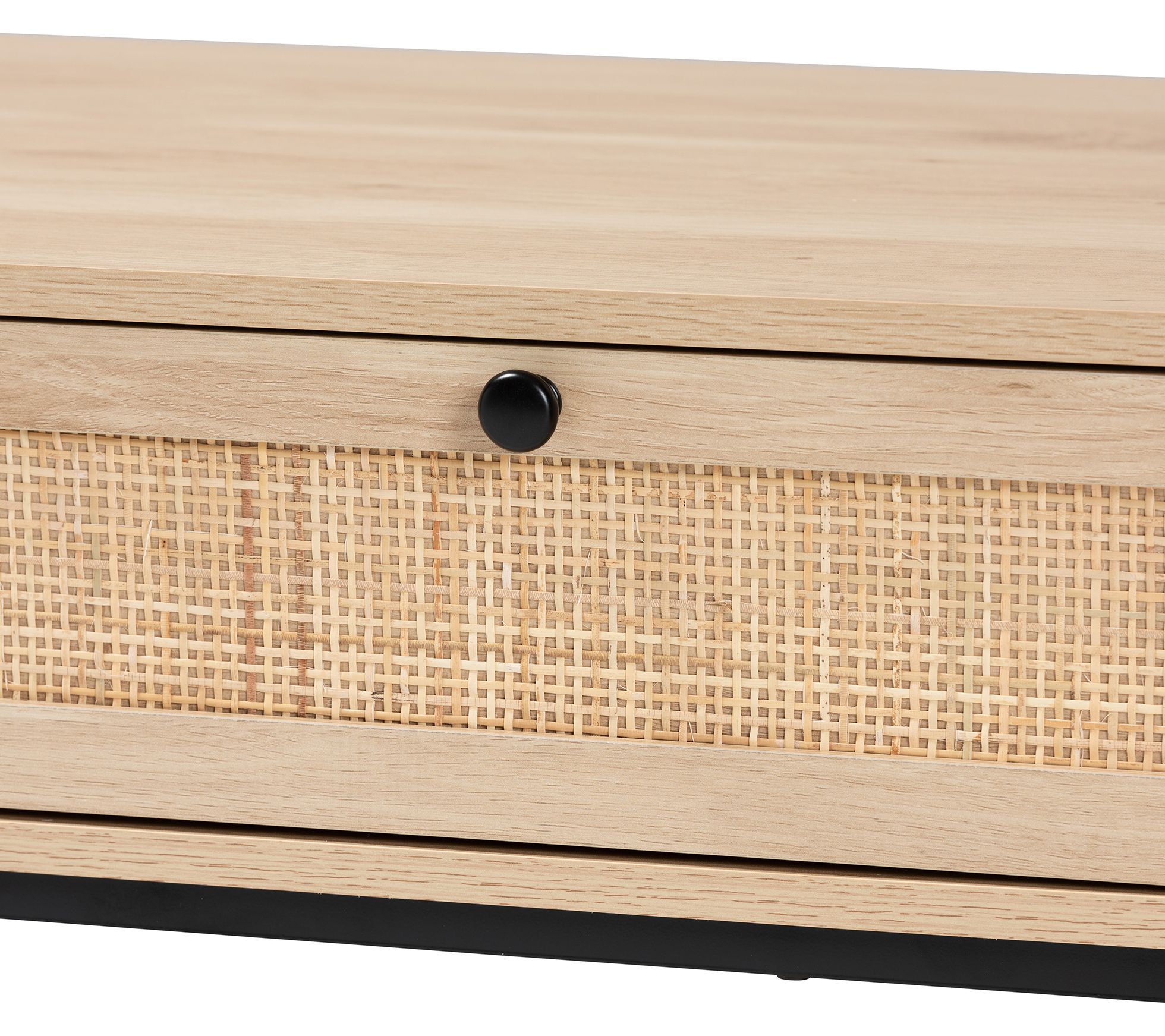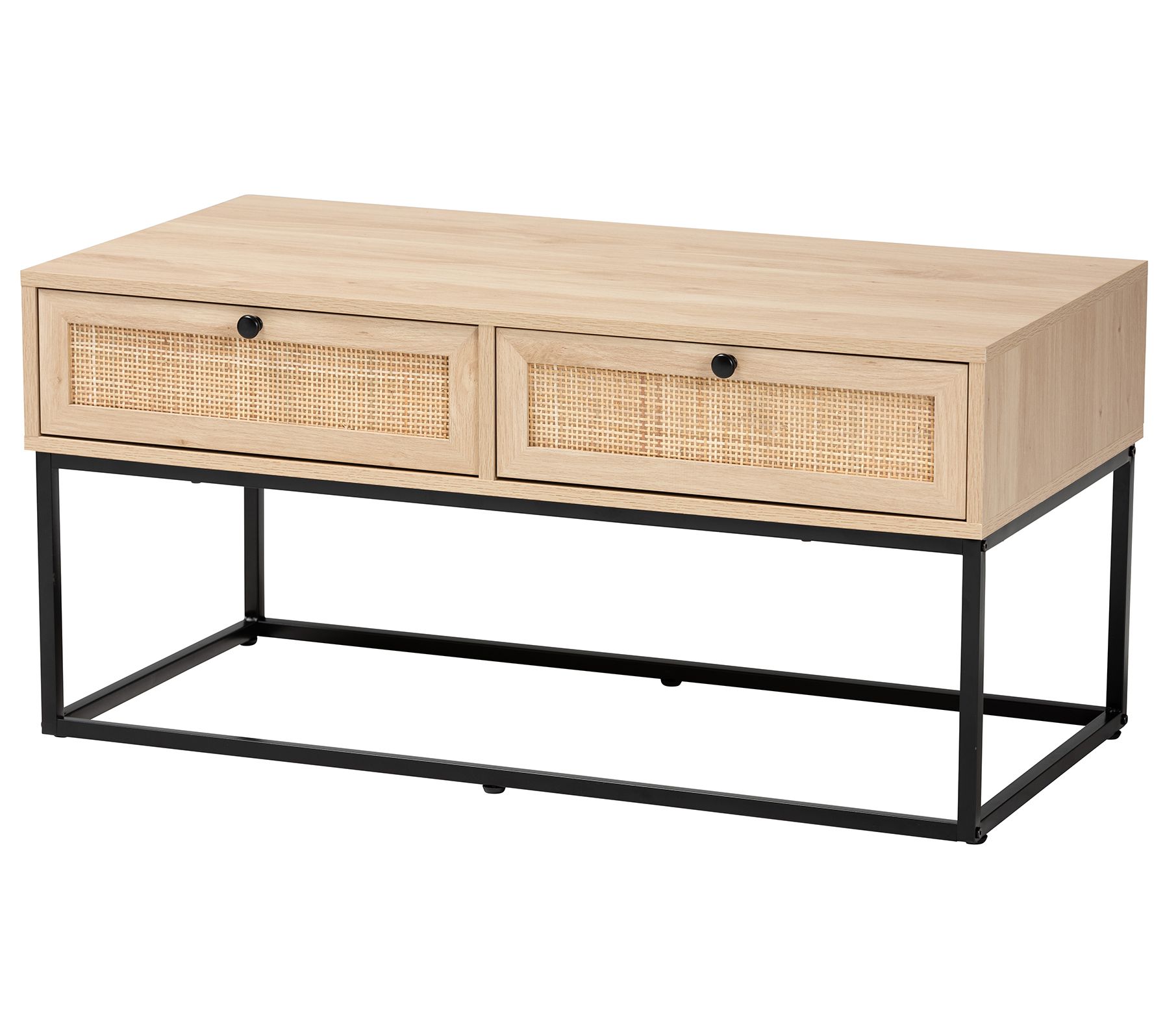 Enhance your living space with the stylish statement of this modern coffee table that organizes home essentials with two rattan-detailed drawers. From Baxton Studio.