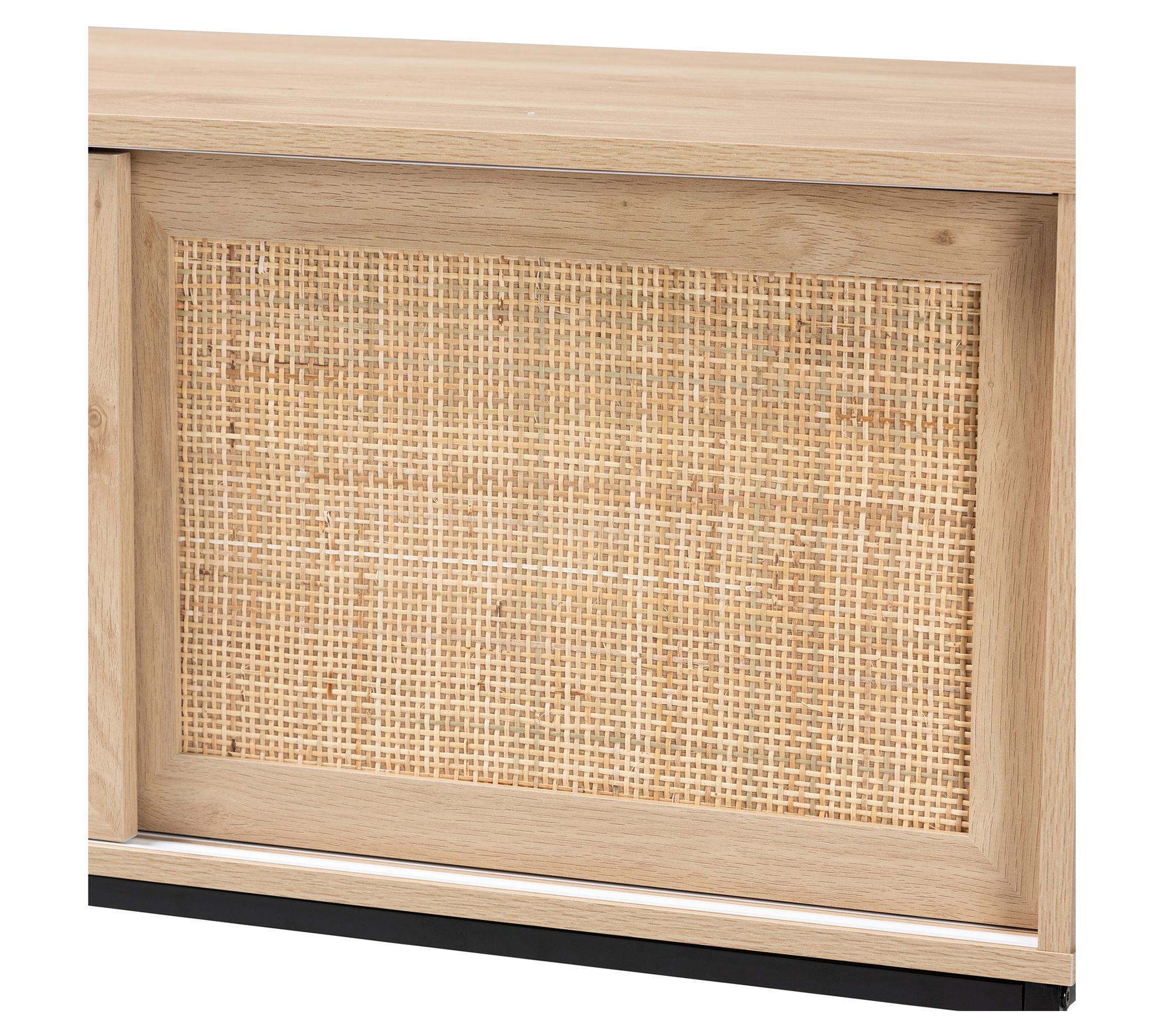 Store items of all shapes and sizes in this spacious sideboard boasting two style-right sliding doors faced with woven rattan. From Baxton Studio.