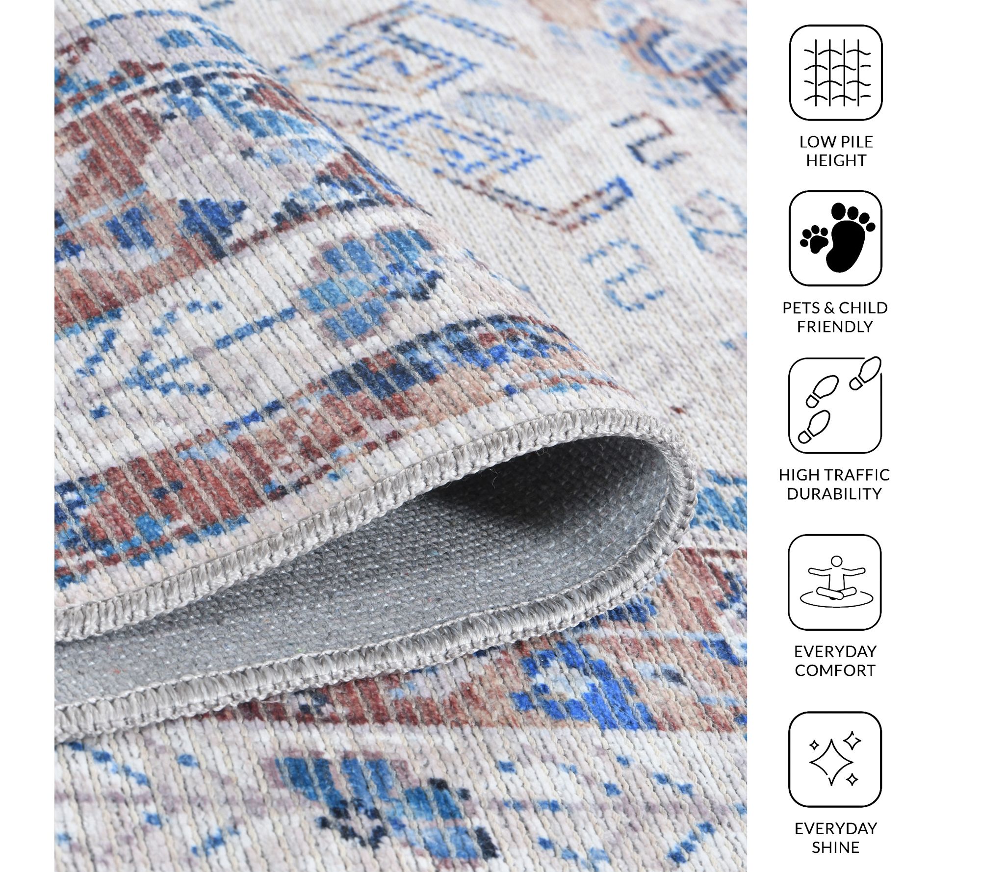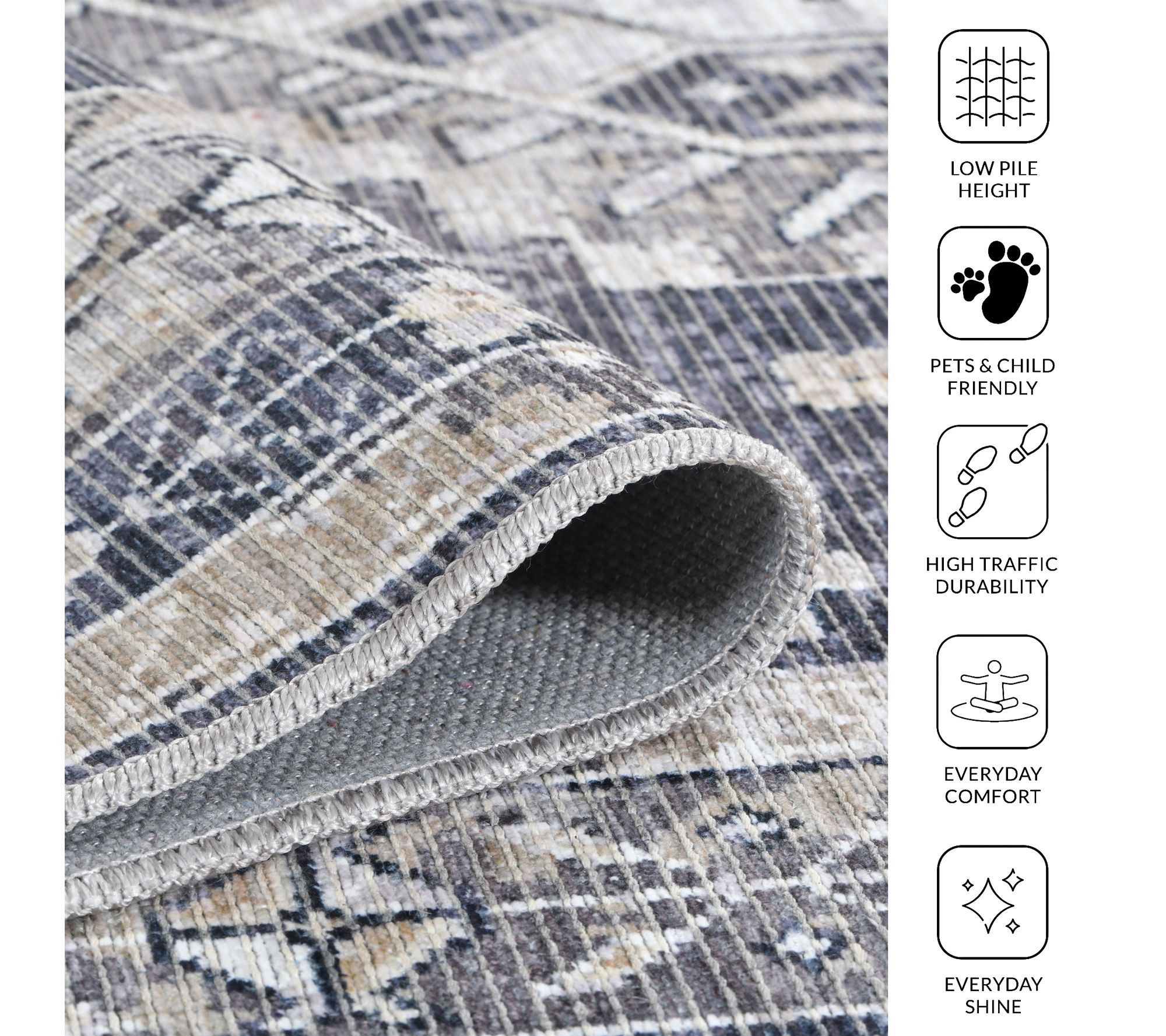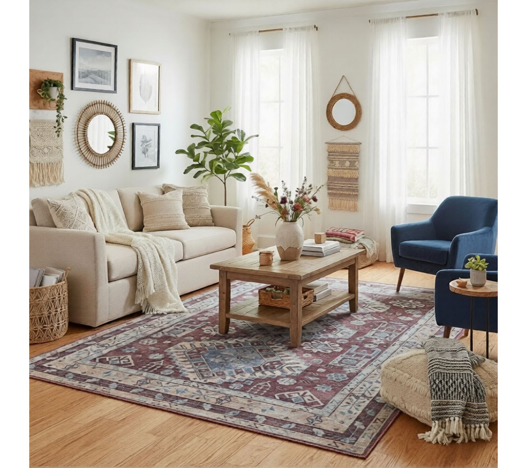Gather the family for movie night or enjoy quiet mornings with a cup of coffee on this area rug, where the beautiful distressed boho medallion design and soft chenille-cotton blend create a warm, inviting centerpiece. Durable and easy to care for, this rug stands up to daily life in high-traffic spaces -- making it a cozy foundation for every moment. From Amer Rugs.