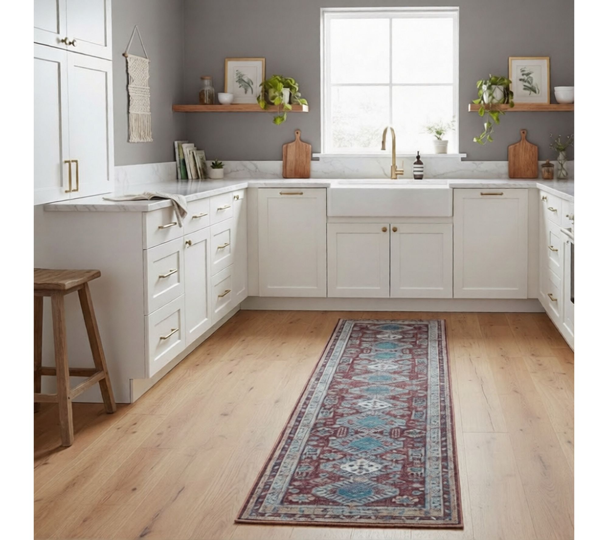 Warmth and personality fill your hallway with this vintage runner rug, creating a cozy pathway perfect for catching up with old friends or welcoming guests as they step inside. Its inviting design brings charm to any space, and the generous length covers high-traffic areas with style and comfort. From Amer Rugs.