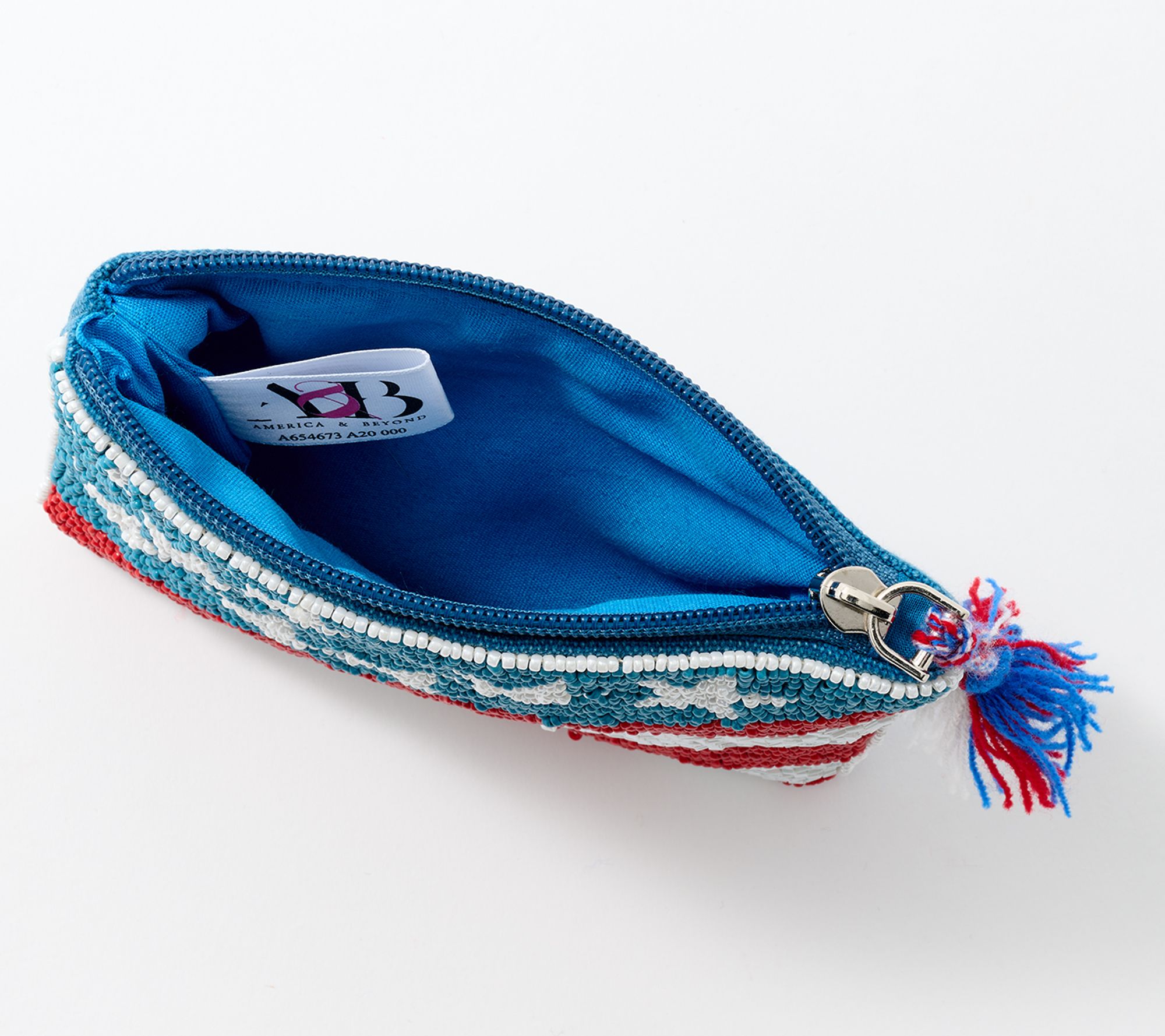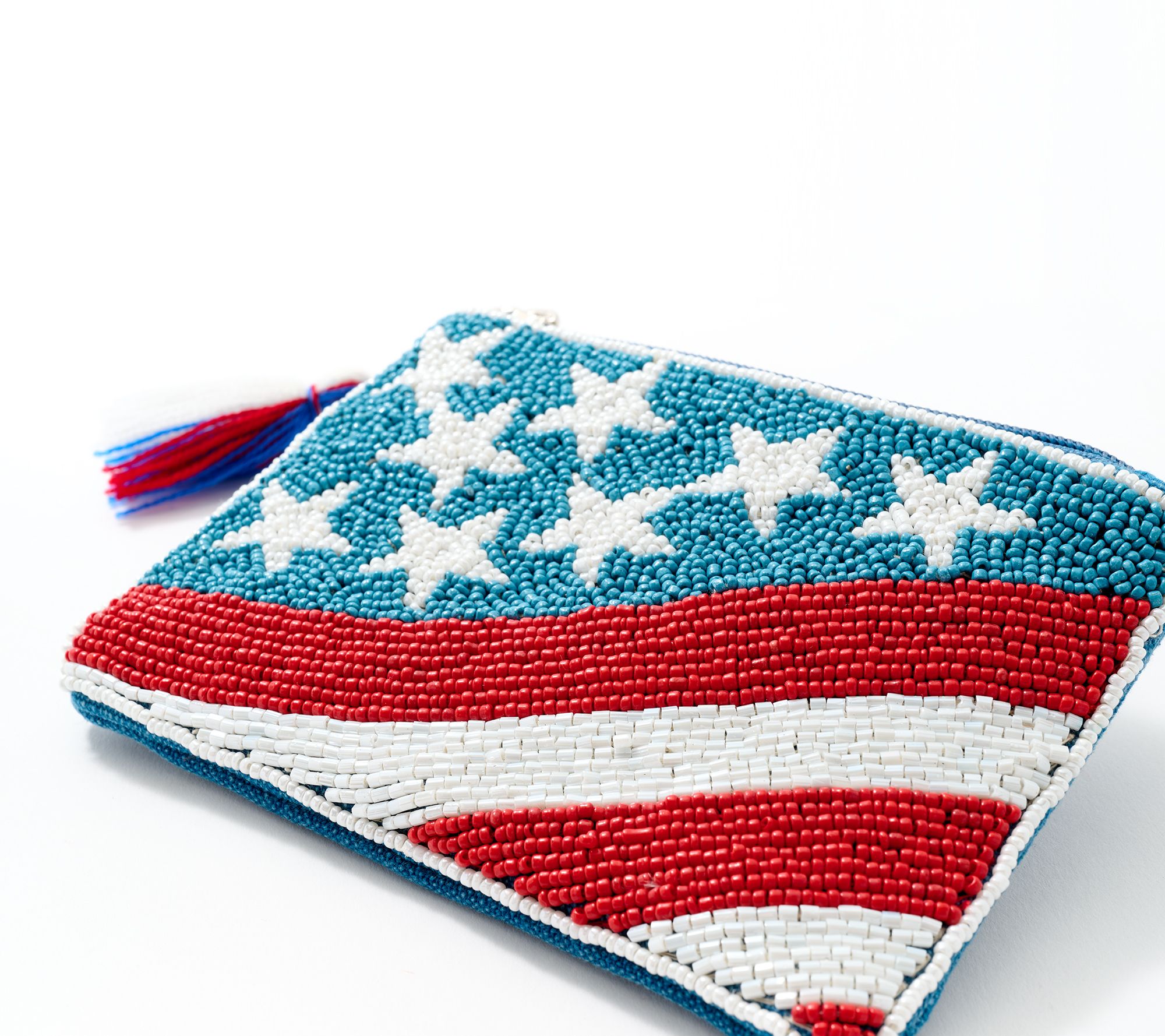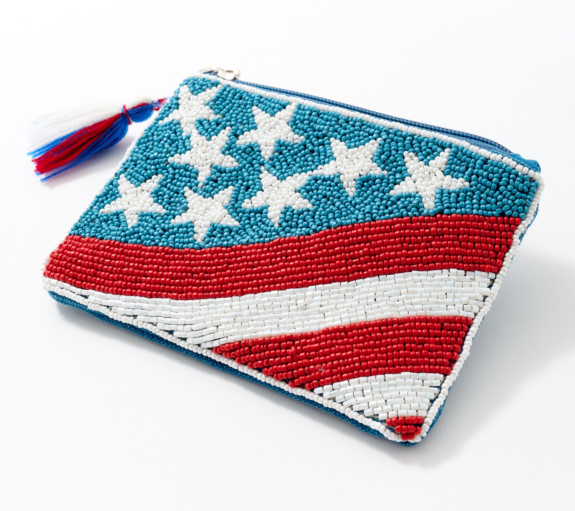 Show your stars and stripes while you reach for your stash. This beautifully beaded coin pouch keeps your coins and cash contained while proudly promoting your love of all things Americana. From America & Beyond.