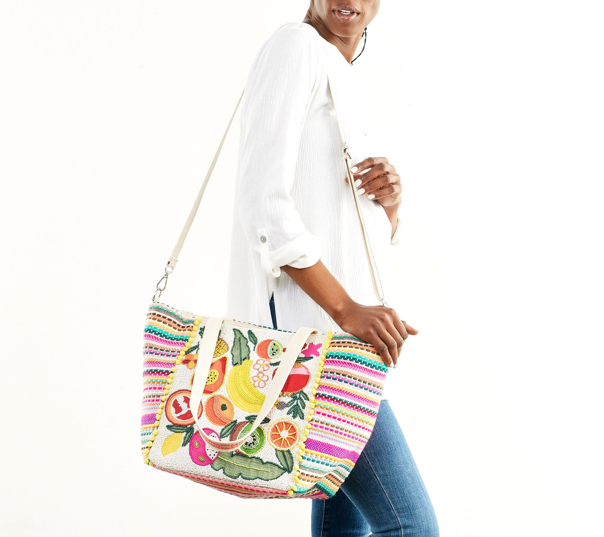 America & Beyond Medium Embellished Tote w/ Crossbody Strap