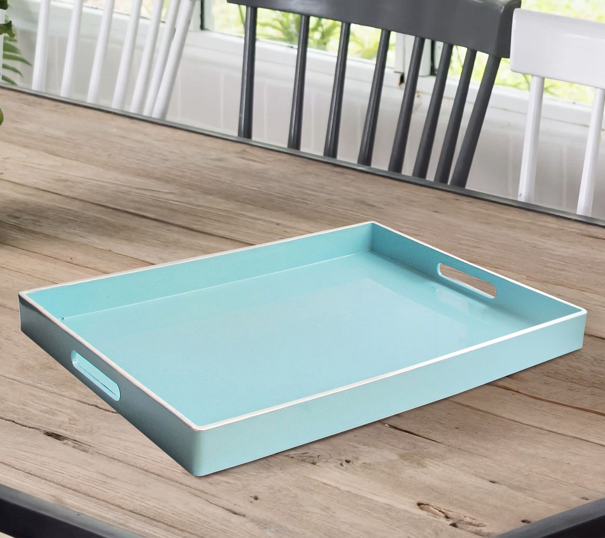 Whether you love traditional, transitional, or mid-century modern design, this tray is the perfect fit for any decor. Use it to serve cocktails or hors d'oeuvres at your next get-together -- or as a display dish for candles, flowers, and trinkets. From American Atelier.