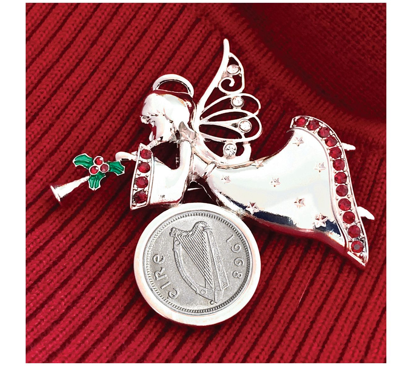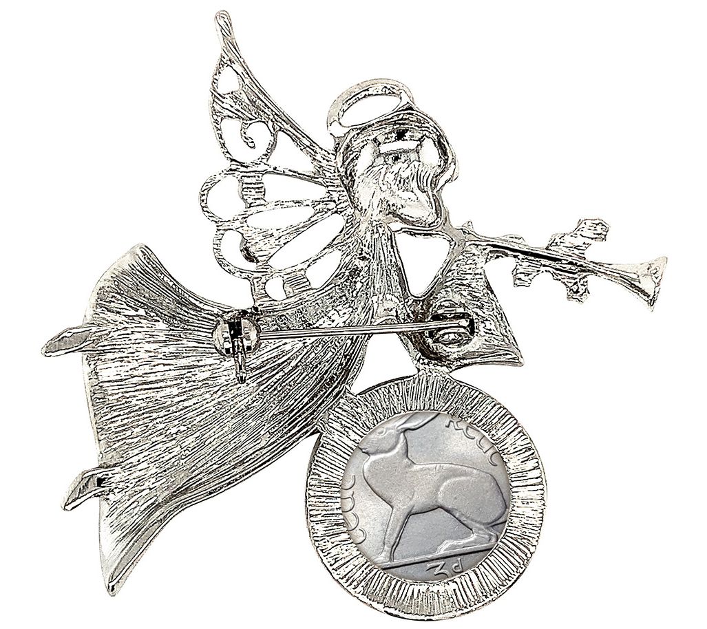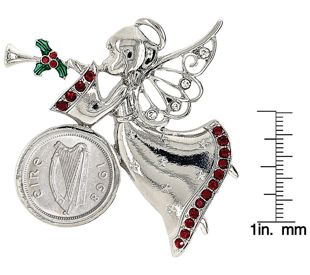 Bring a touch of heavenly charm to your holiday attire with this brooch that features an Irish threepence accented by a beautifully detailed angel. From American Coin Treasures.