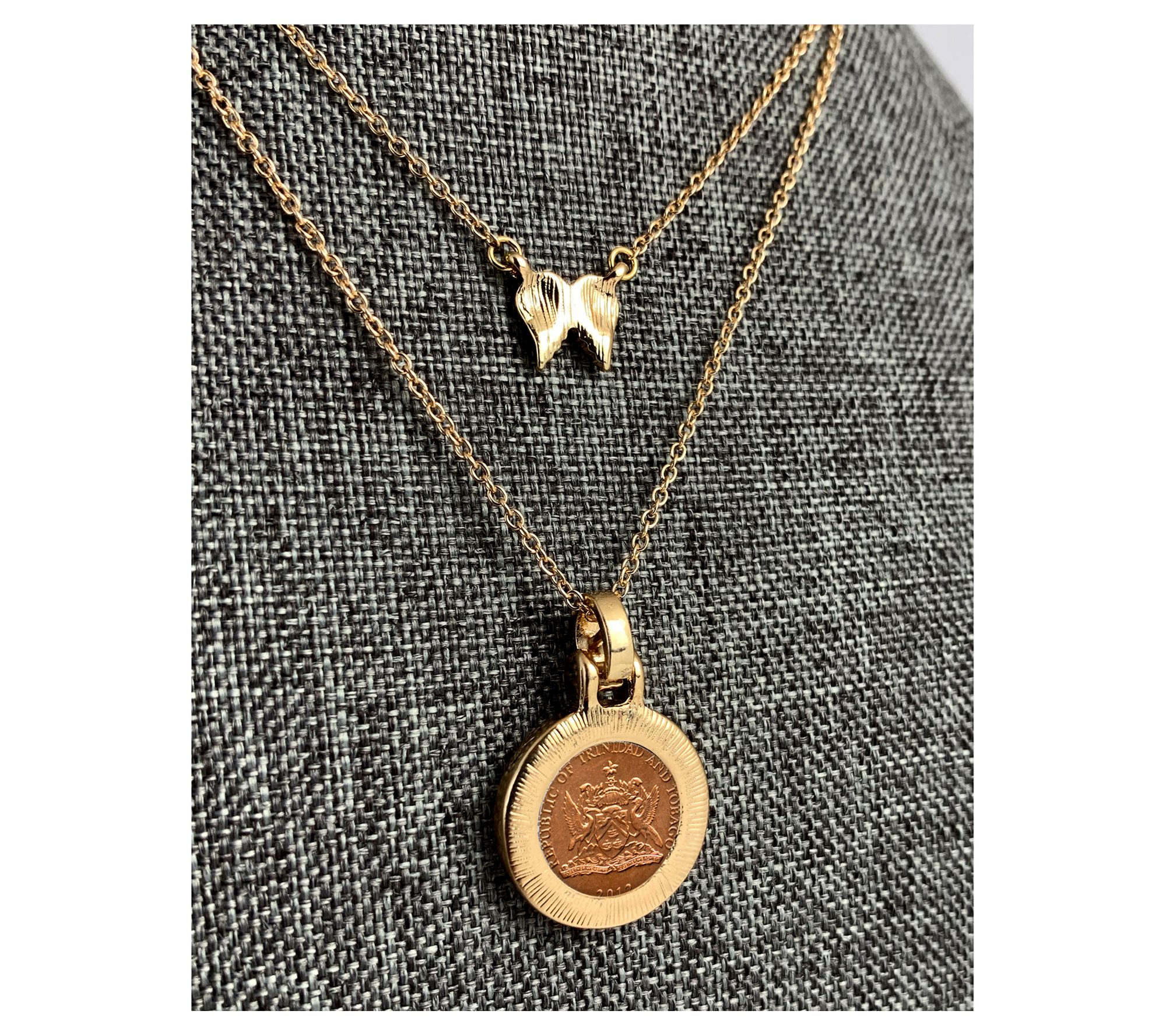 American Coin Hummingbird Coin Goldtone DoubleChain Pendant