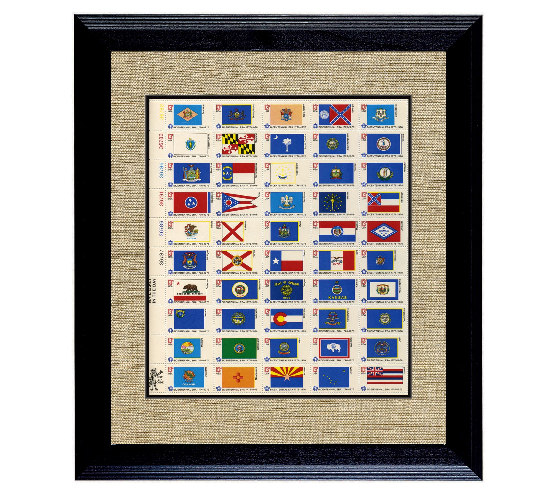 American Coin U.S. State Flag Stamp Sheet w/ Wod Frame