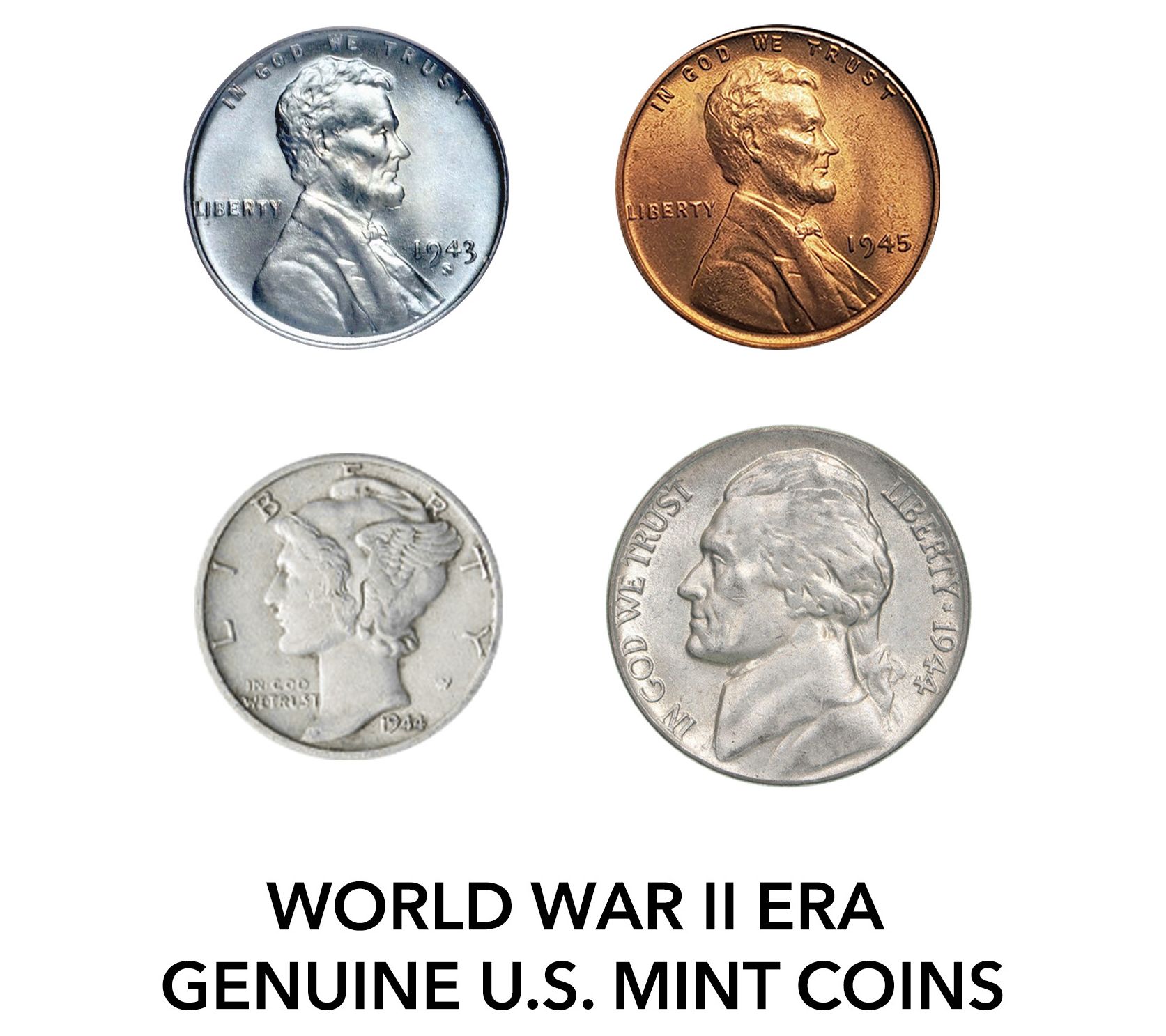 • Features a 1943 Lincoln Steel penny, 1942-1945 Jefferson nickel, and 1942-1945 Mercury dime