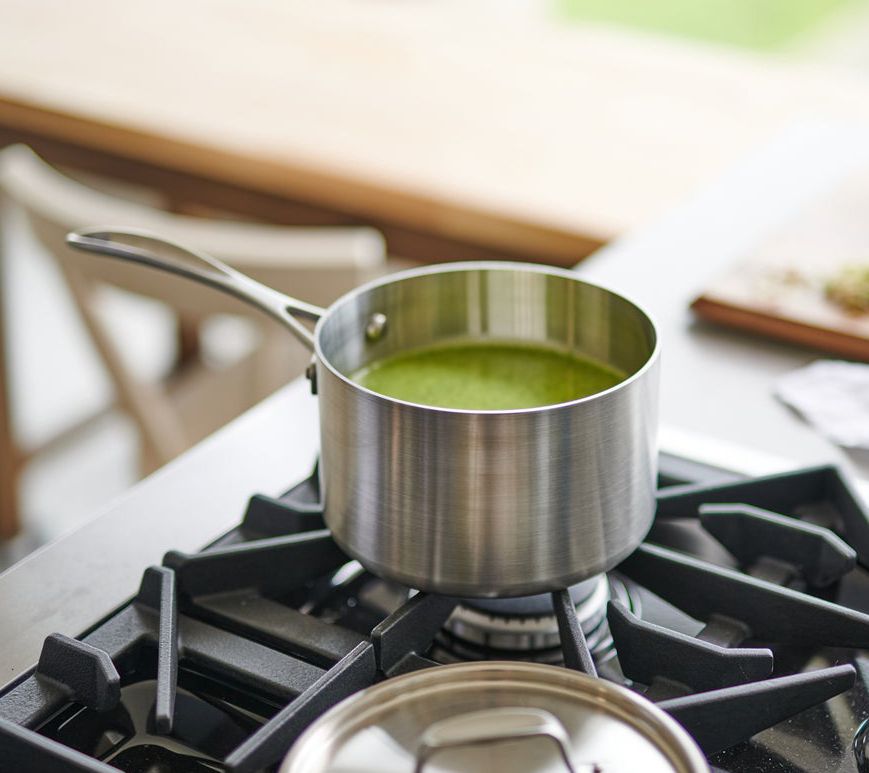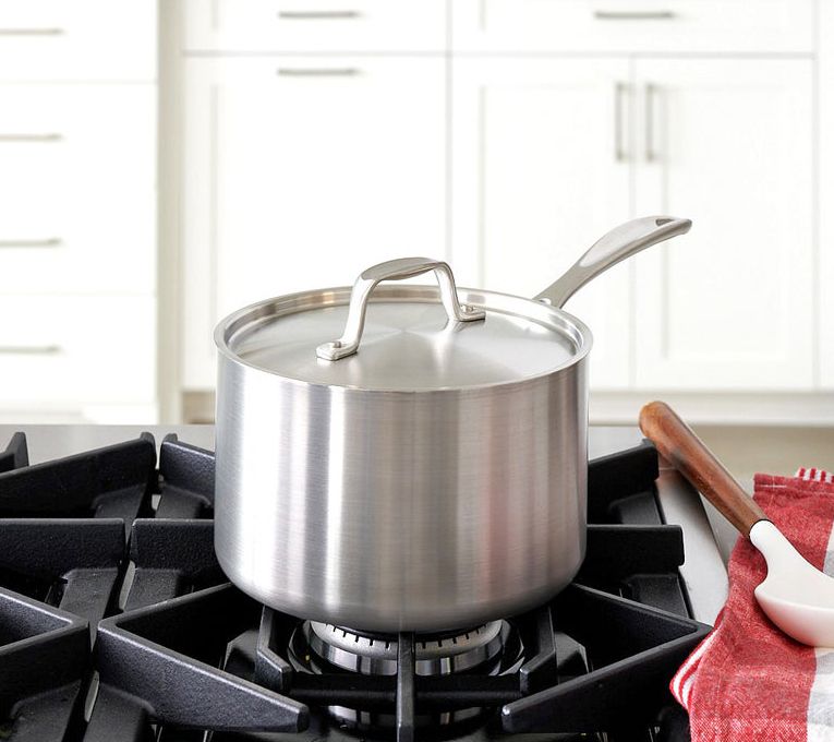 Cook up a batch of your favorite soups, stews, and more inside this stainless steel sauce pan that features tri-ply construction for even heating and a dishwasher-safe design for quick and easy cleanup. From American Kitchen.