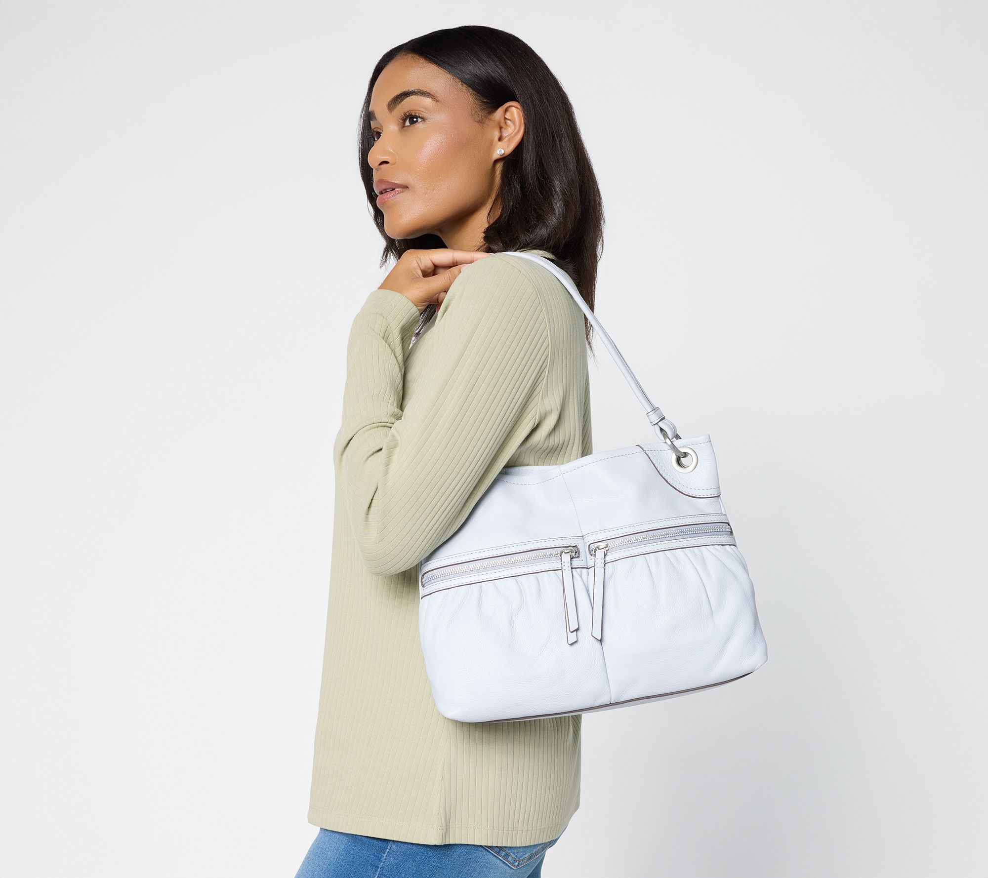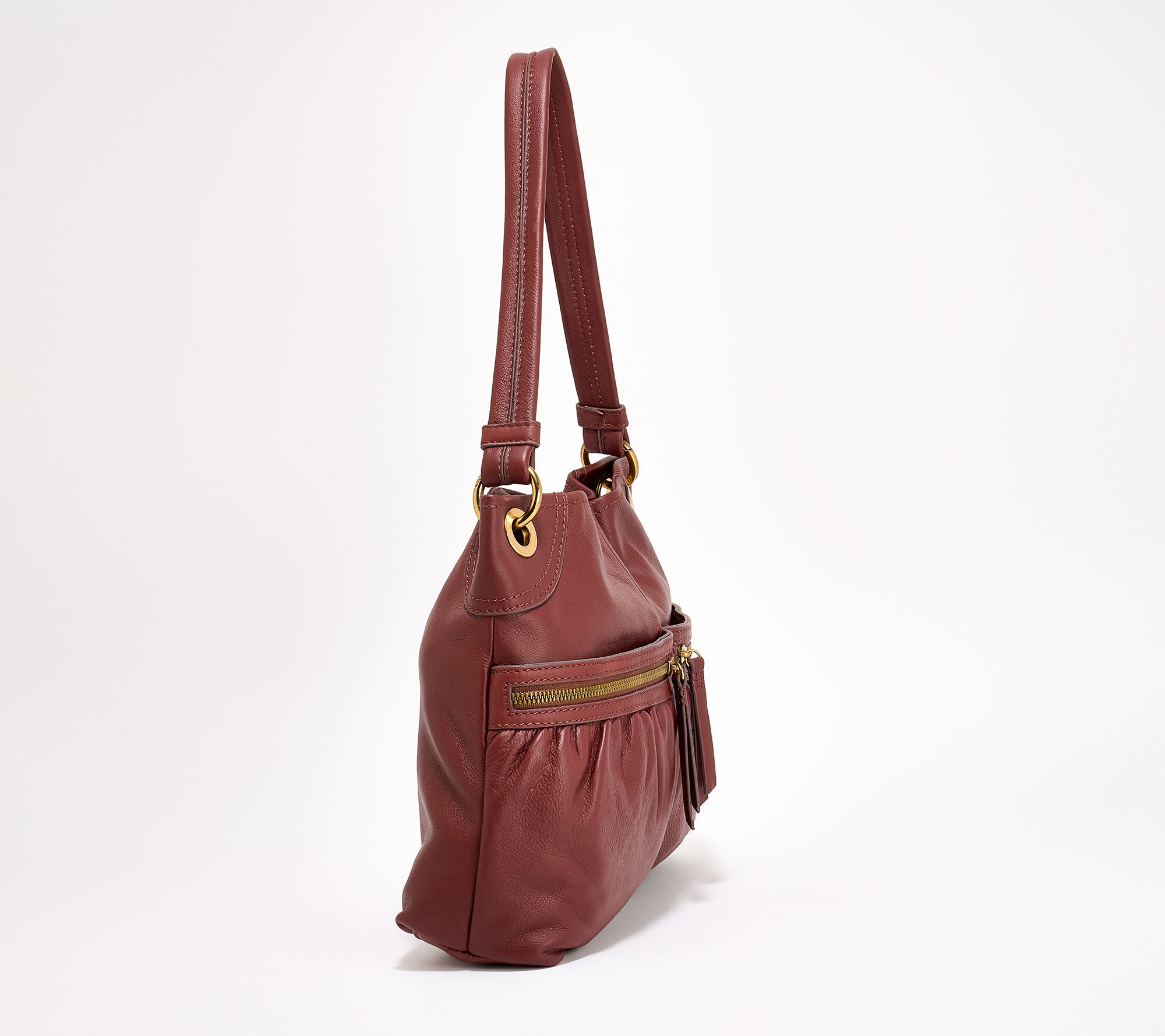 Organization -- it's in the bag! You've got must-haves, and Amber masterfully makes room for it all with multiple pockets inside and out. This leather shoulder bag keeps essentials close with a statement-making silhouette you'll reach for on the daily. From American Leather Co.