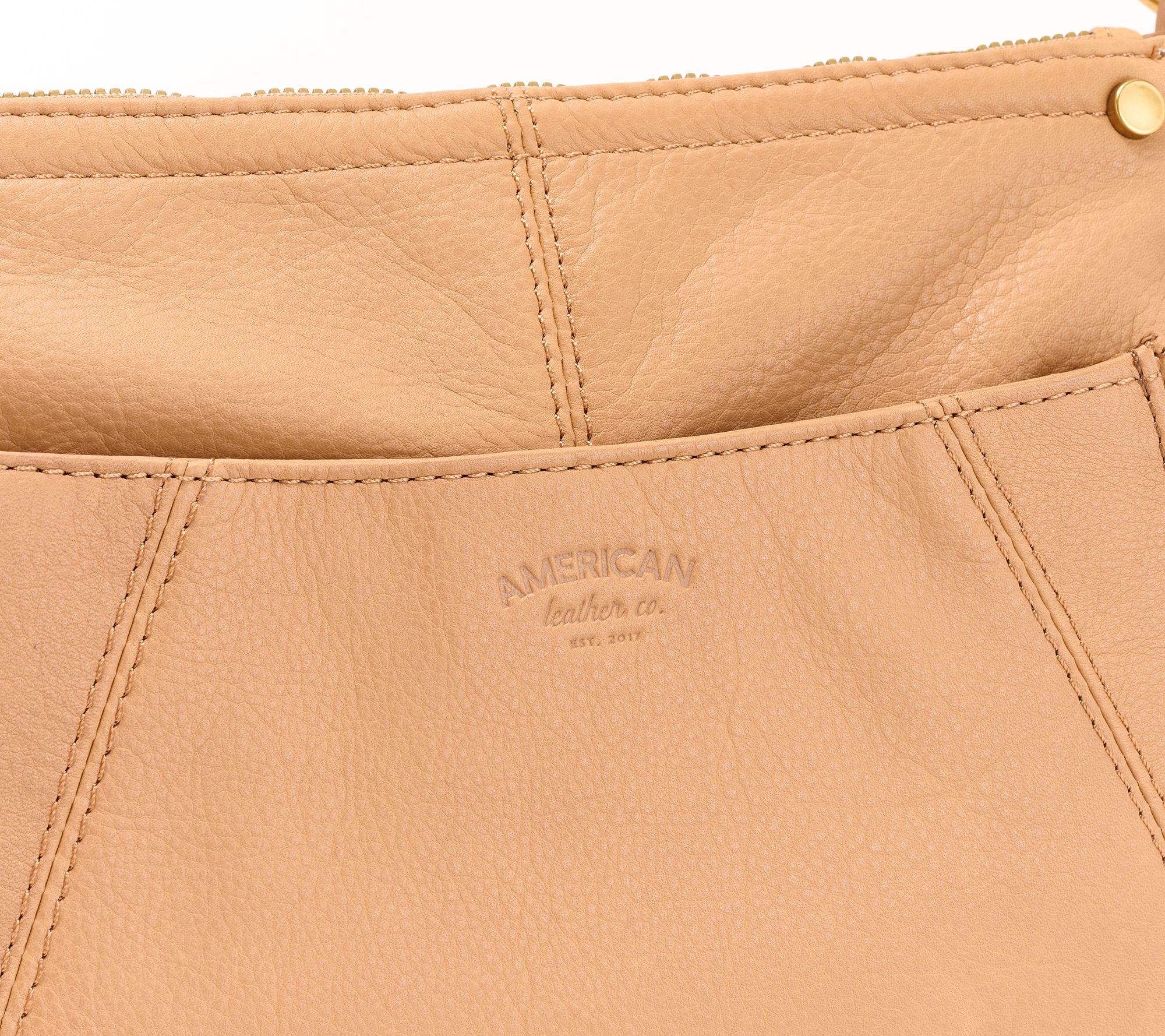 The Becket triple-entry shoulder bag offers a timeless look with practical functionality. With sleek lines and a structured silhouette, this carryall is for the woman who wants to stand out. From American Leather Co.