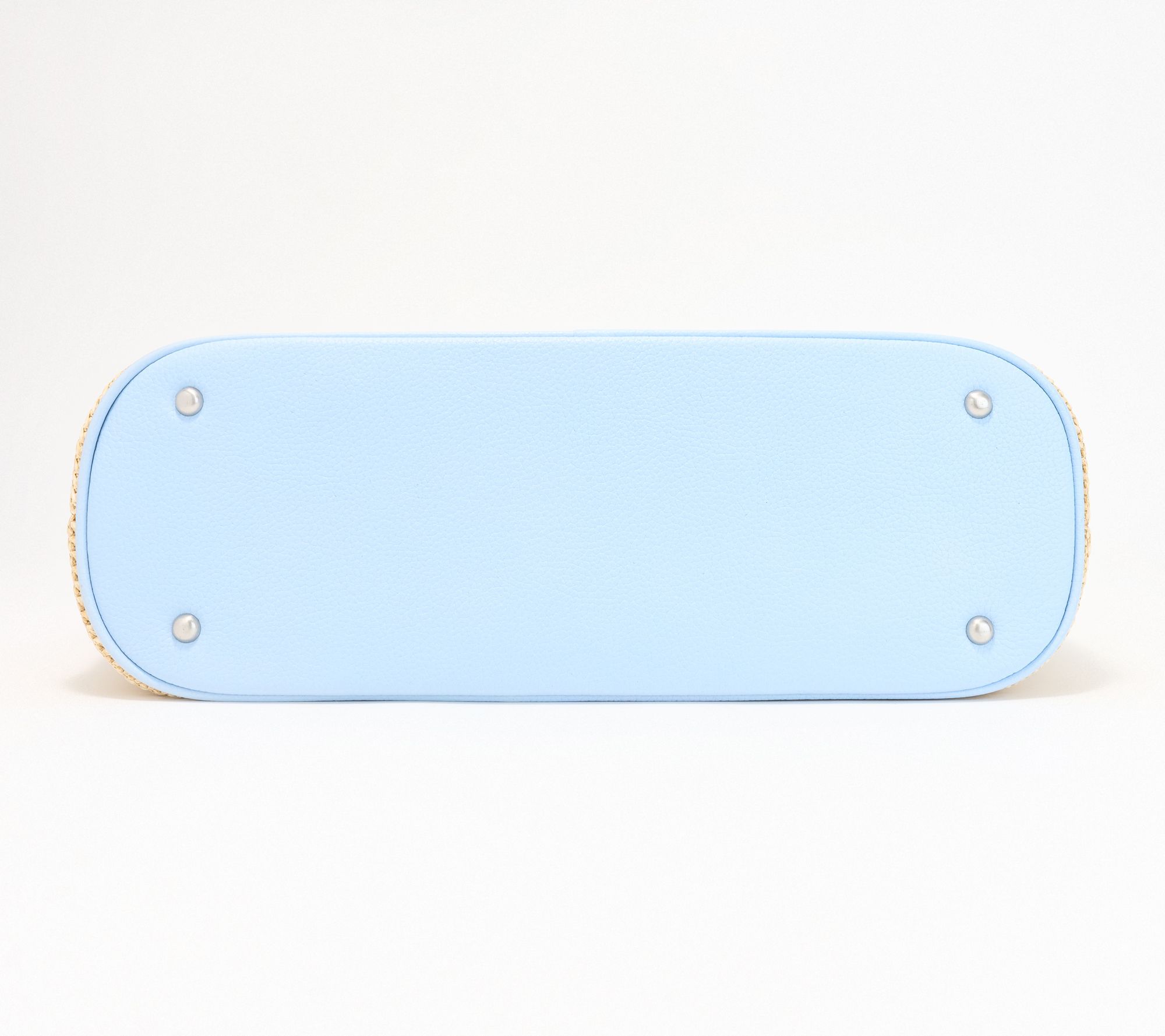 Magnetic snap main entry, back slip pocket, dome stud feet