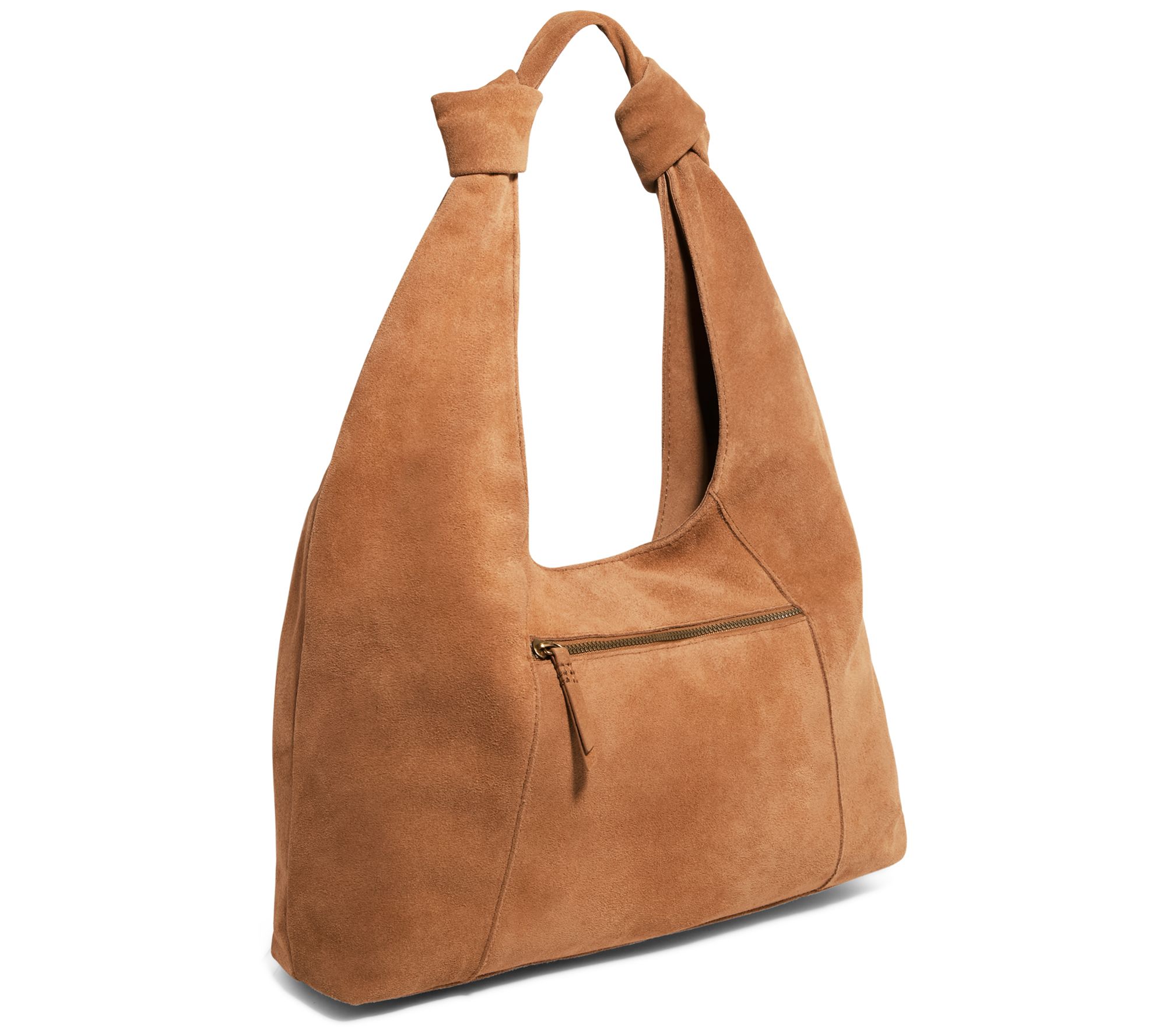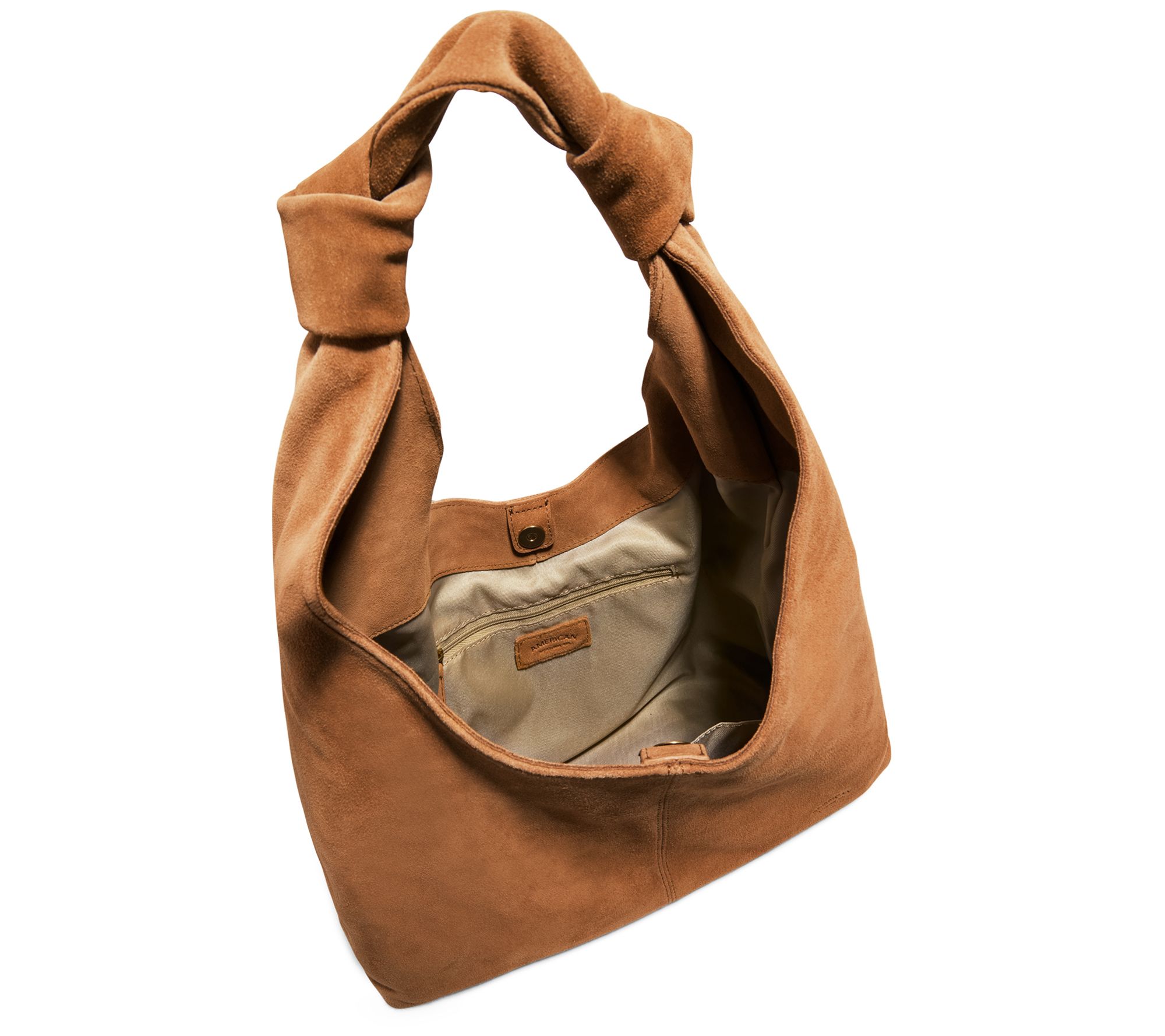 Everyday style is effortless with the Gables hobo, crafted from supple leather or suede and designed to fit comfortably on your shoulder for workdays, weekends, or a quick lunch meet-up. A roomy interior with smart pockets and exterior zip pocket keeps phone, cards, and keys organized, while chic knot detail and dome stud feet add a subtle touch of flair. From American Leather Co.