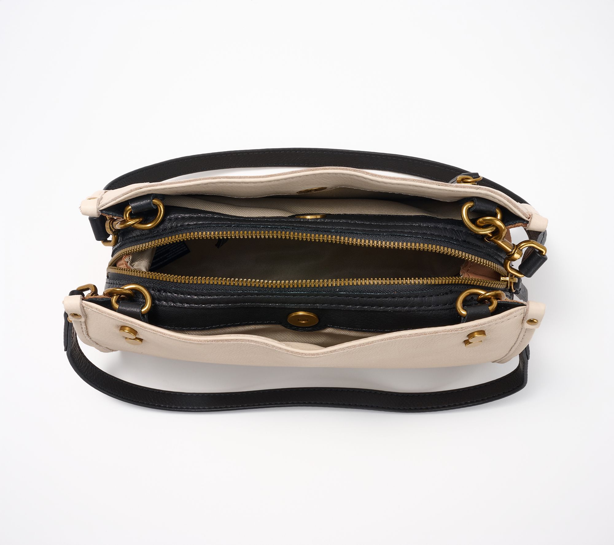 Coffee dates, quick errands, or evenings out are all easier with this streamlined shoulder bag tucked under your arm. The tanned leather feels soft to the touch yet structured enough to keep essentials organized, while three separate compartments keep everything in its place. Antiqued hardware, removable straps, and dome stud feet lend personality and reliable wear from day to night. From American Leather Co.