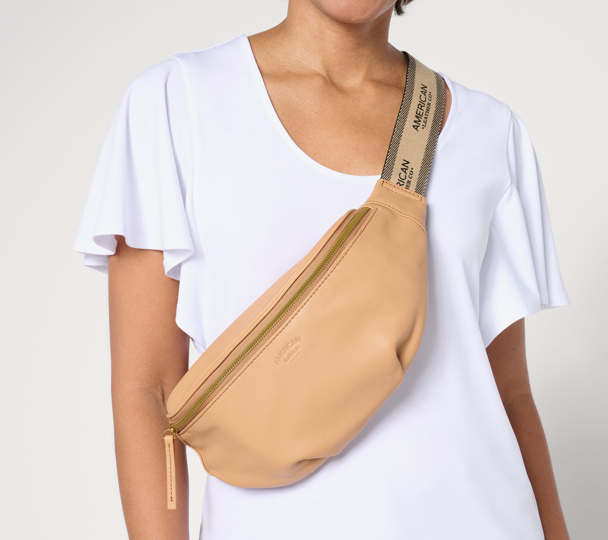 Crafted from glove-tanned leather and featuring antiqued hardware, this versatile bag is perfect for any occasion. Whether you wear it as a crossbody or a bum bag, the adjustable strap ensures a comfortable fit. From American Leather Co.