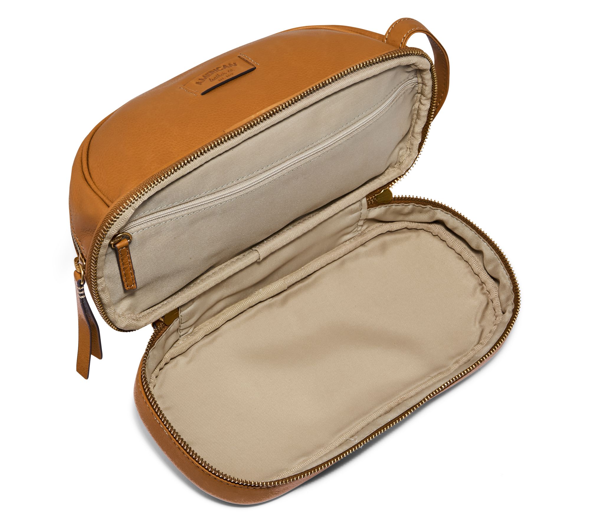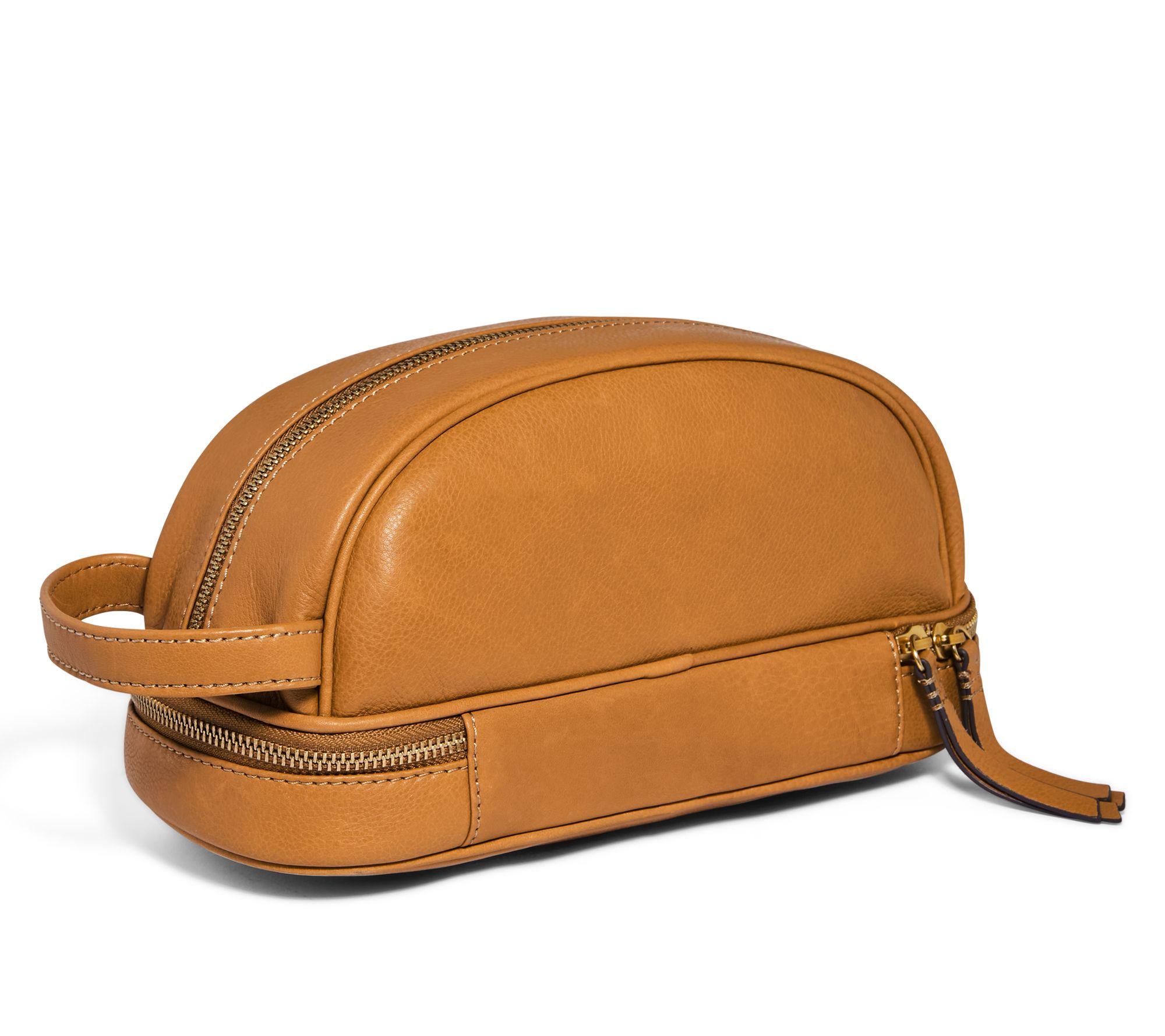 This travel-friendly leather toiletry bag holds all your take-alongs -- and keeps essentials separated thanks to two easy-zip compartments. From American Leather Co.