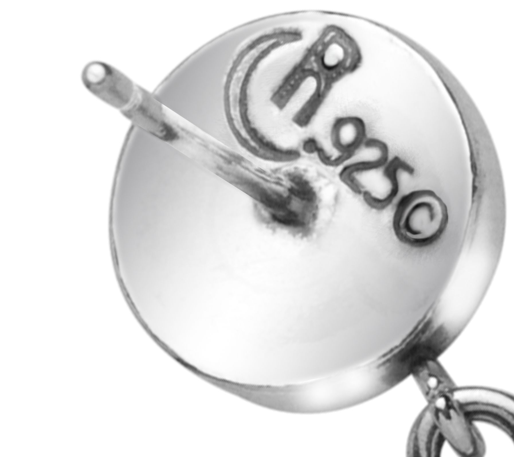 • Stamped sterling silver spheres; oxidized with polished accents