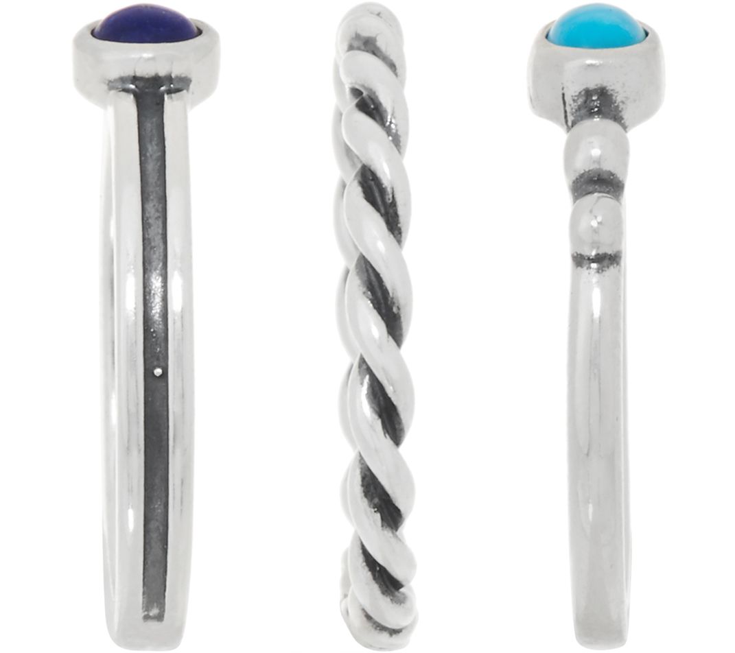 American West Gemstone Set of 3 Sterling Silver Stack Rings