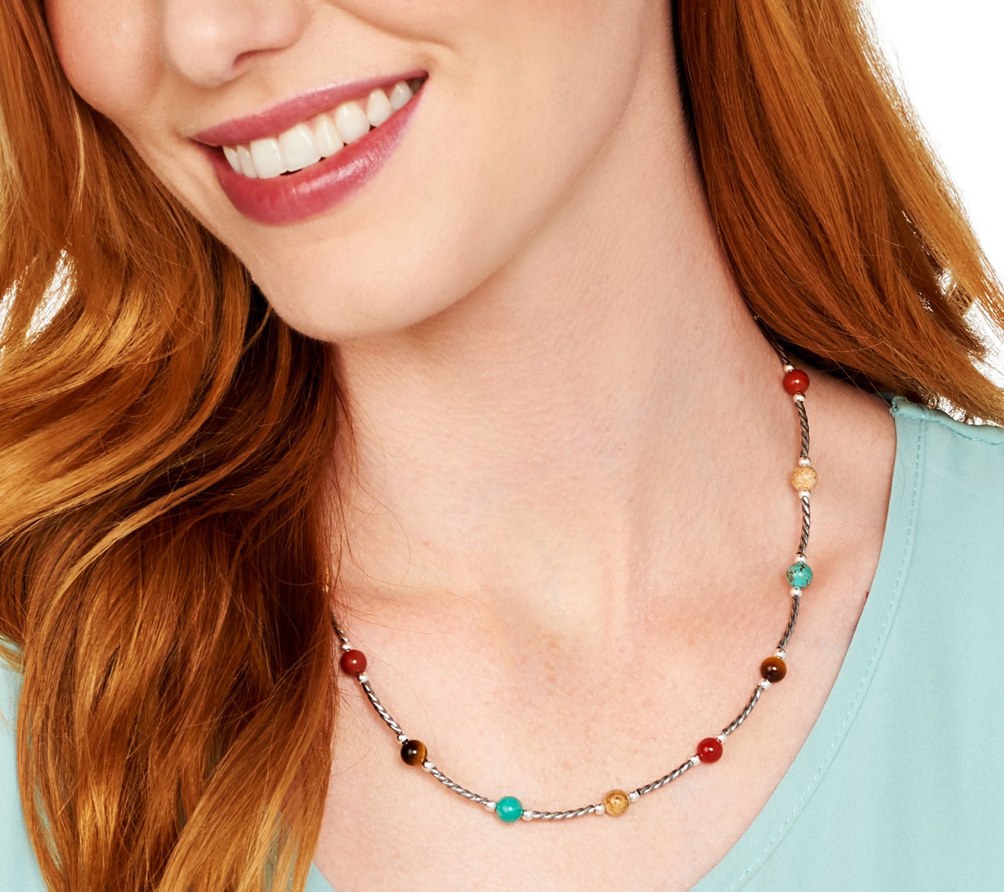 Get just the pop of color you need with this necklace, as round gemstone beads alternate with sterling silver twist bars and beads. From American West Jewelry.