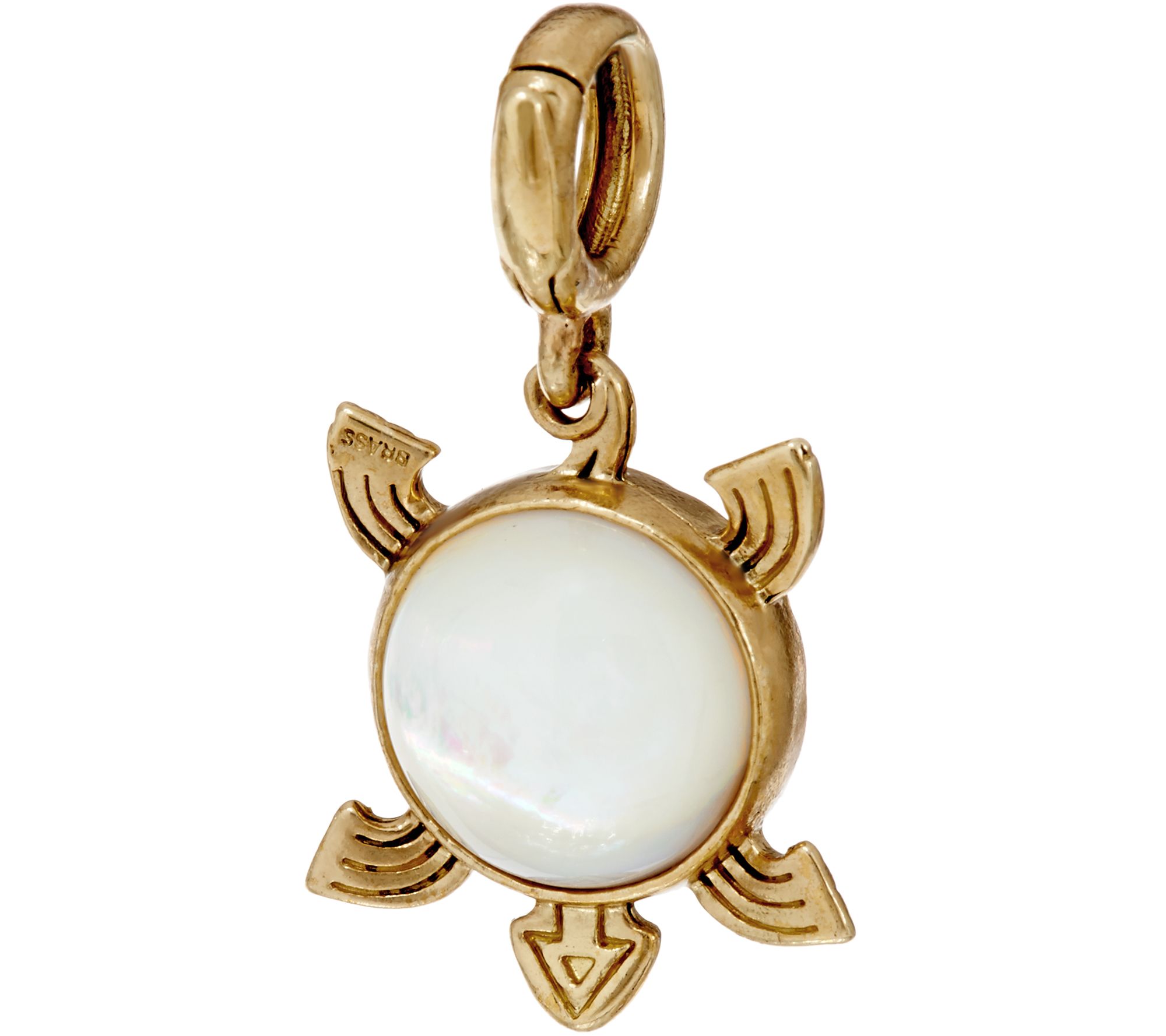 You'll be shell-shocked when you get a glimpse of this see-worthy brass beauty. This turtle has two cabochons: red coral on top and white mother-of-pearl underneath. From American West.