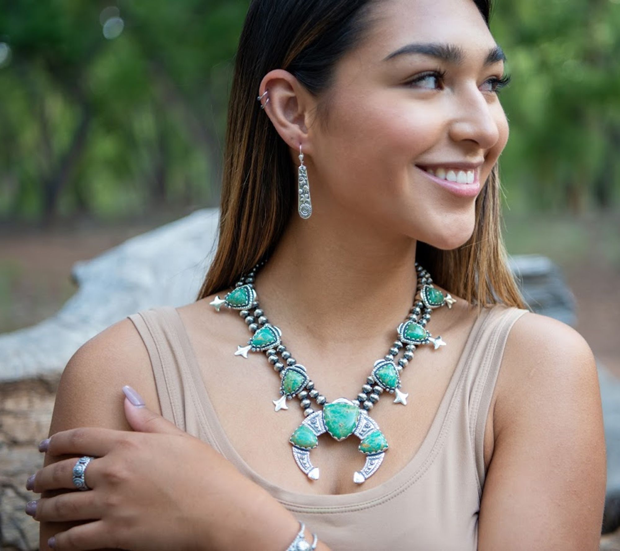 Ready to turn heads? We've got you covered. This statement-making squash blossom necklace showcases your fabulous sense of style and adds an elevated finish to any look. From American West Jewelry..