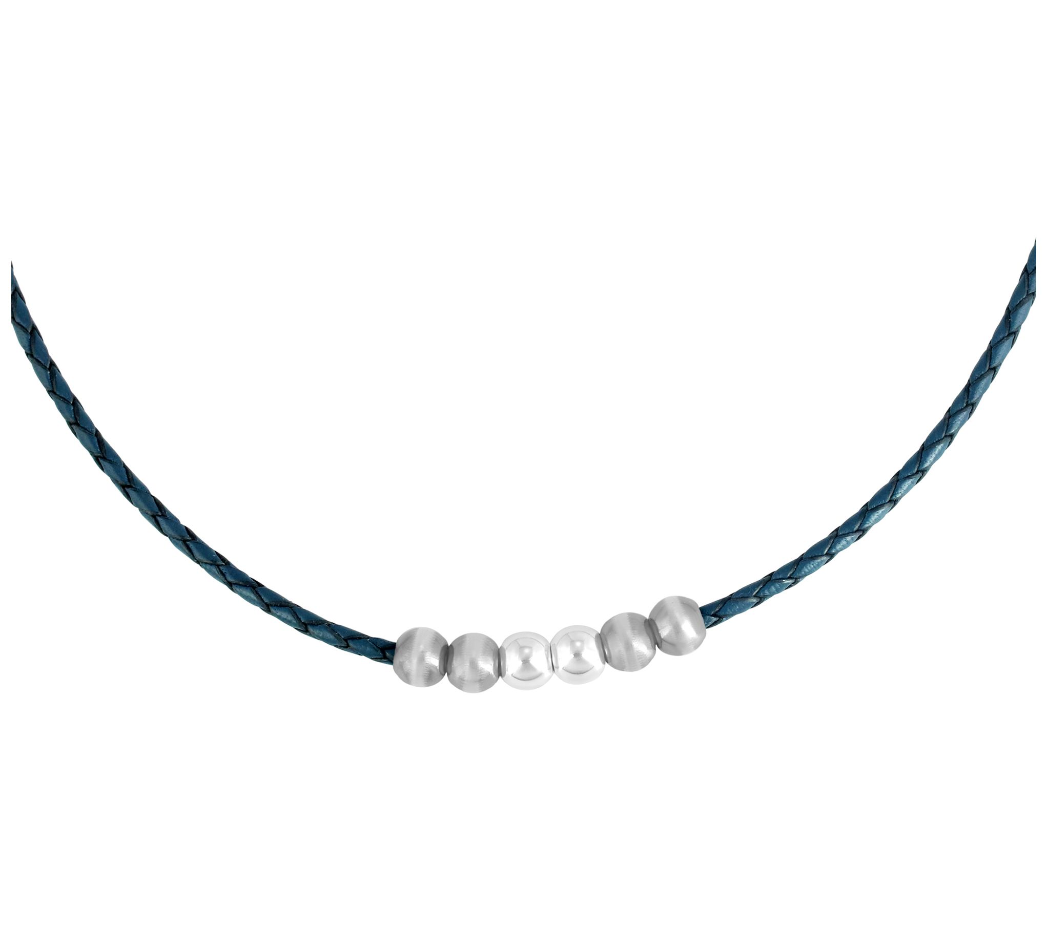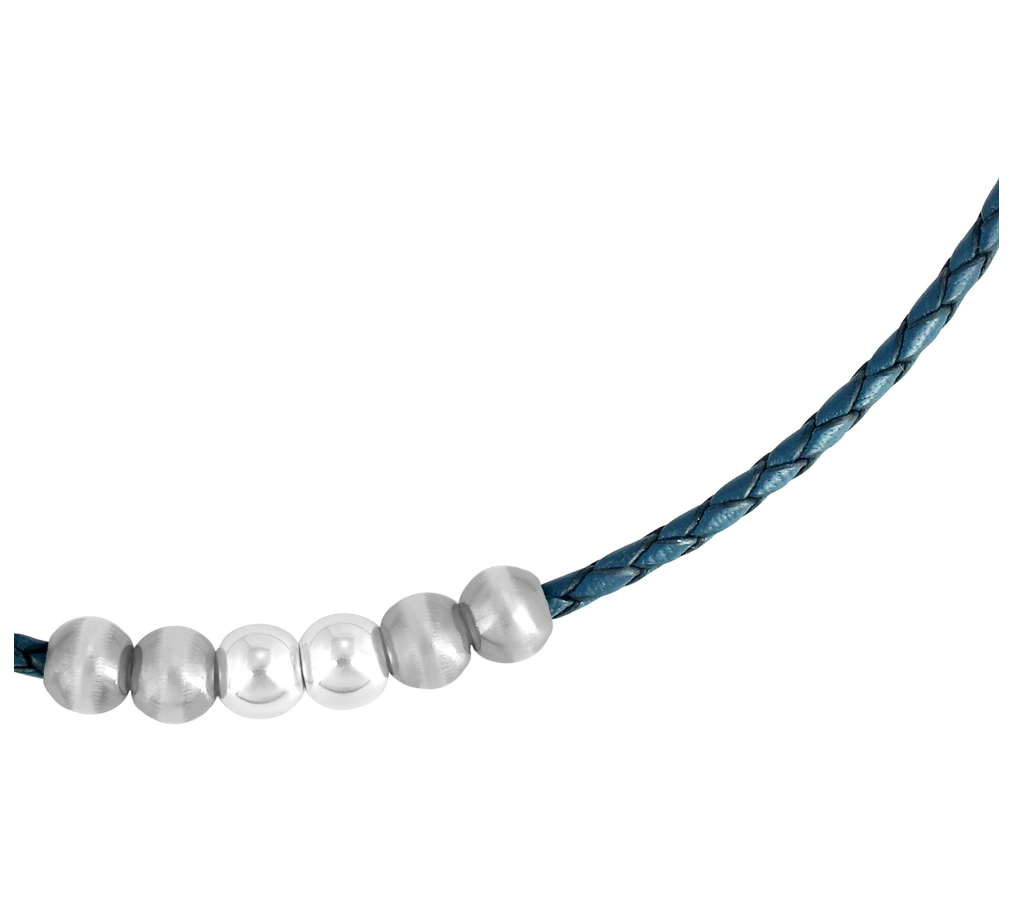 American West Sterling Bead and Braided Leather20" Necklace