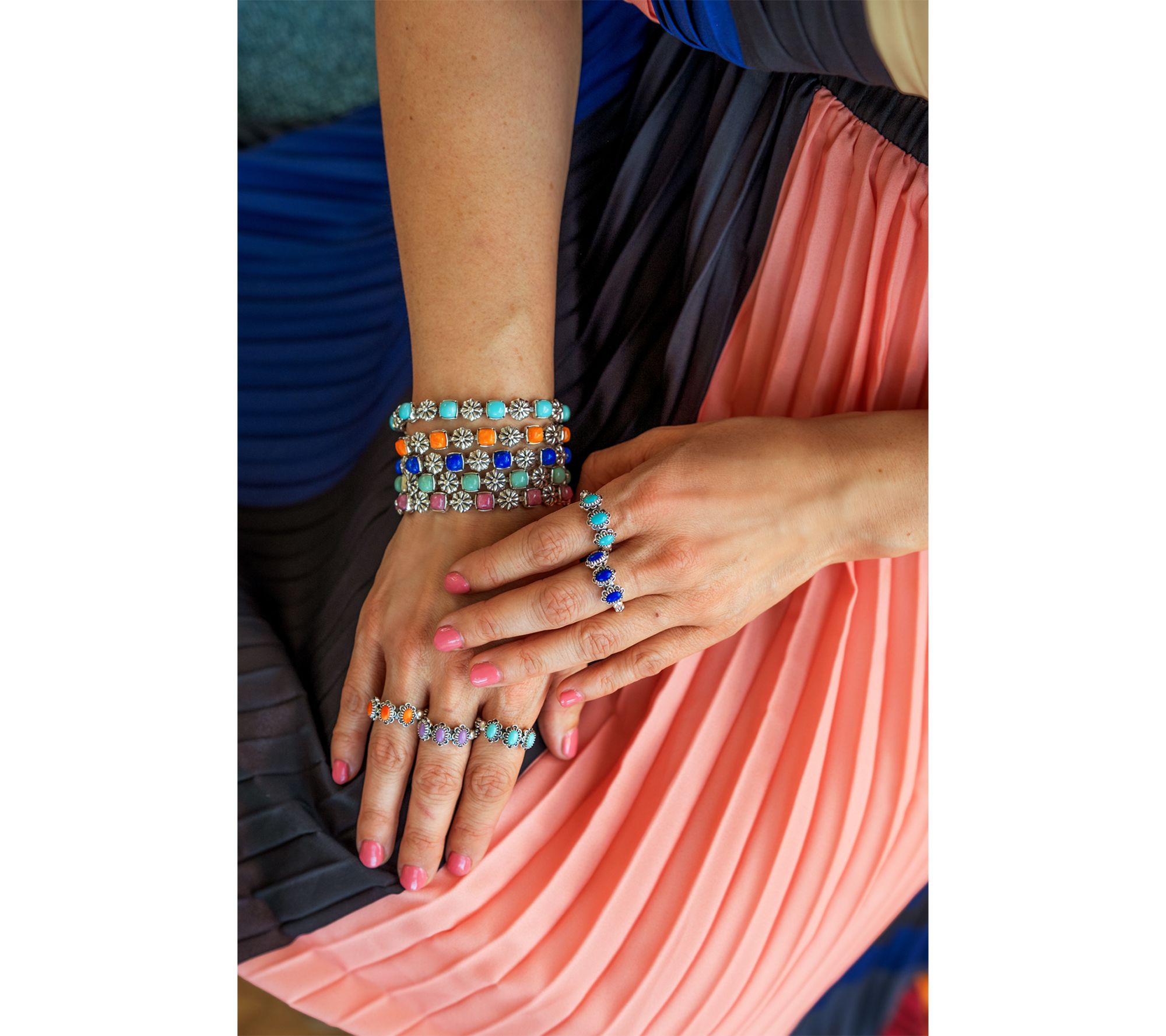 Count on this three-gemstone ring to reflect your passion for Southwestern design and attention to detail. From the intricately scalloped bezel borders to the beautiful blend of concha and bead accents on a smooth band, it's a piece that sparks conversation yet is so comfortable to wear. From American West Jewelry.