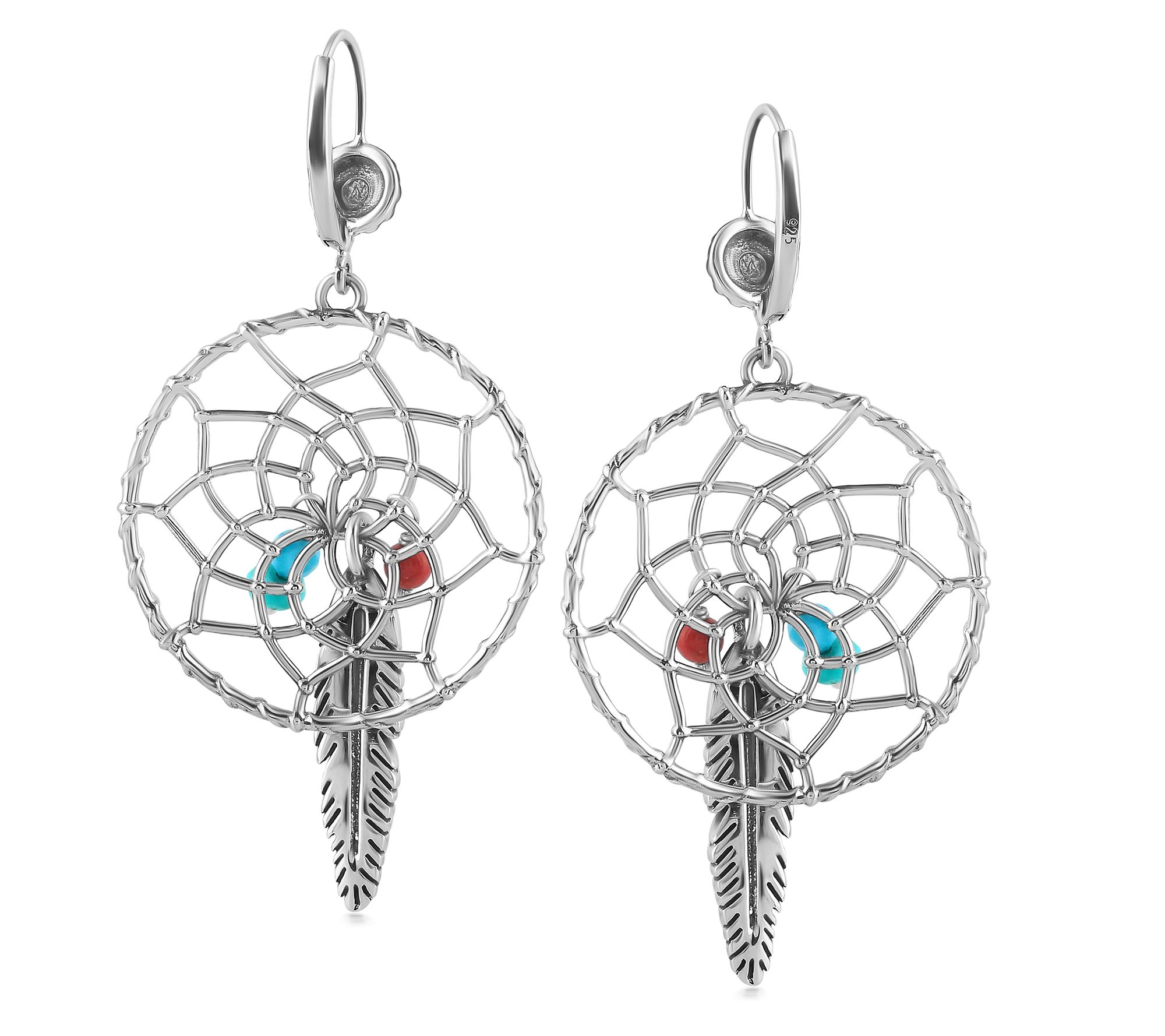 Add a touch of Southwestern charm to your look with these stunning earrings. Featuring a dream catcher design with intricate webbing, these earrings are adorned with beautiful turquoise and red coral beads. From American West.
