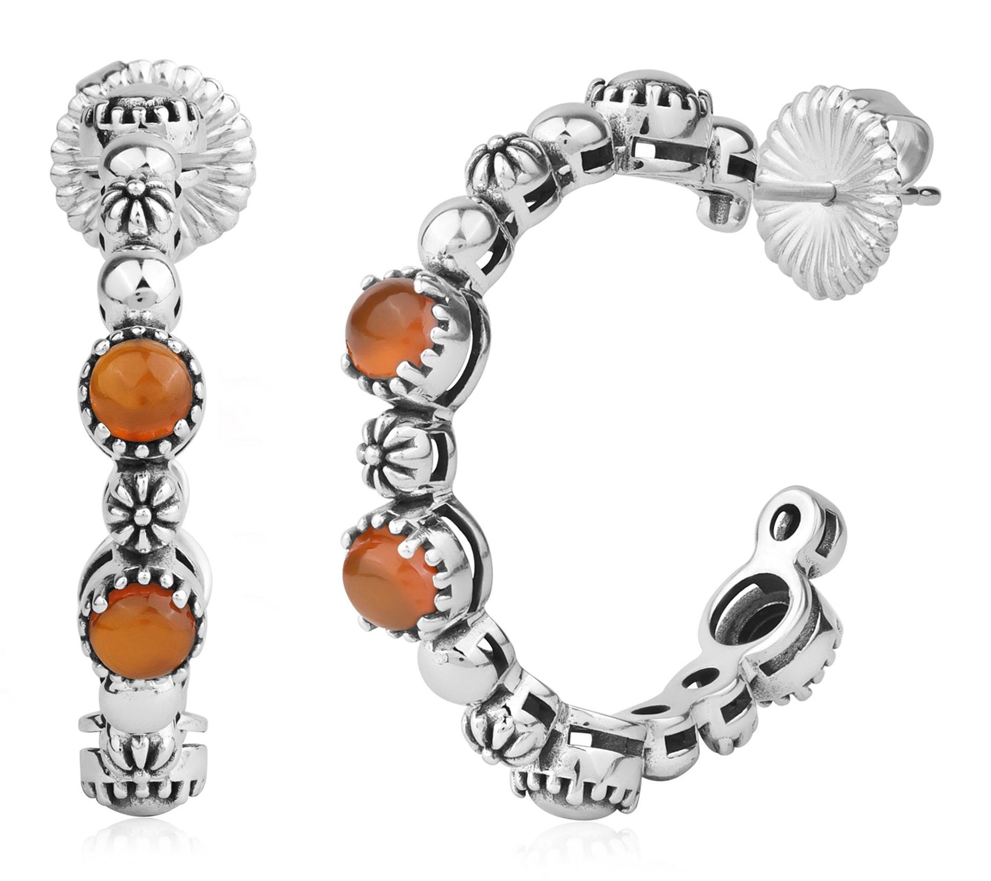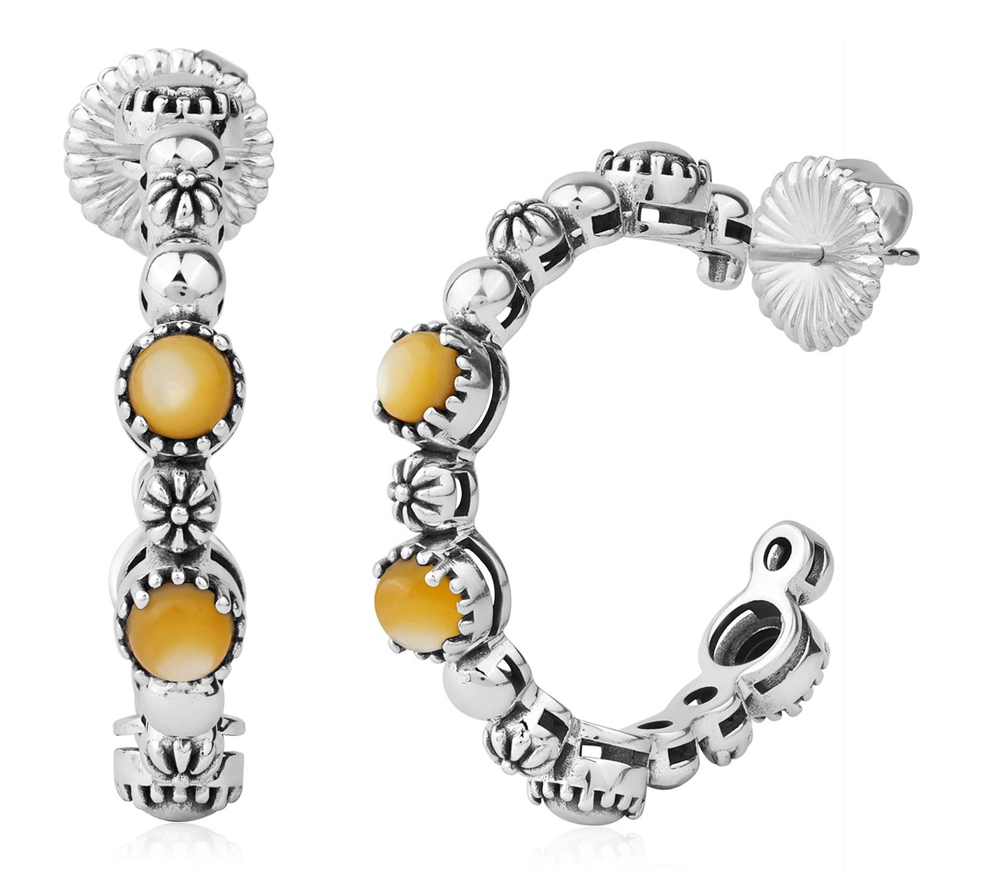 Embrace the spirit of the Southwest every time you wear these gemstone hoop earrings. Glossy gemstone cabochons alongside concha and bead detailing bring added shine and artistry to your favorite looks. Whether it's a casual gathering or a lively night out, these earrings promise head-turning charm. From American West Jewelry.
