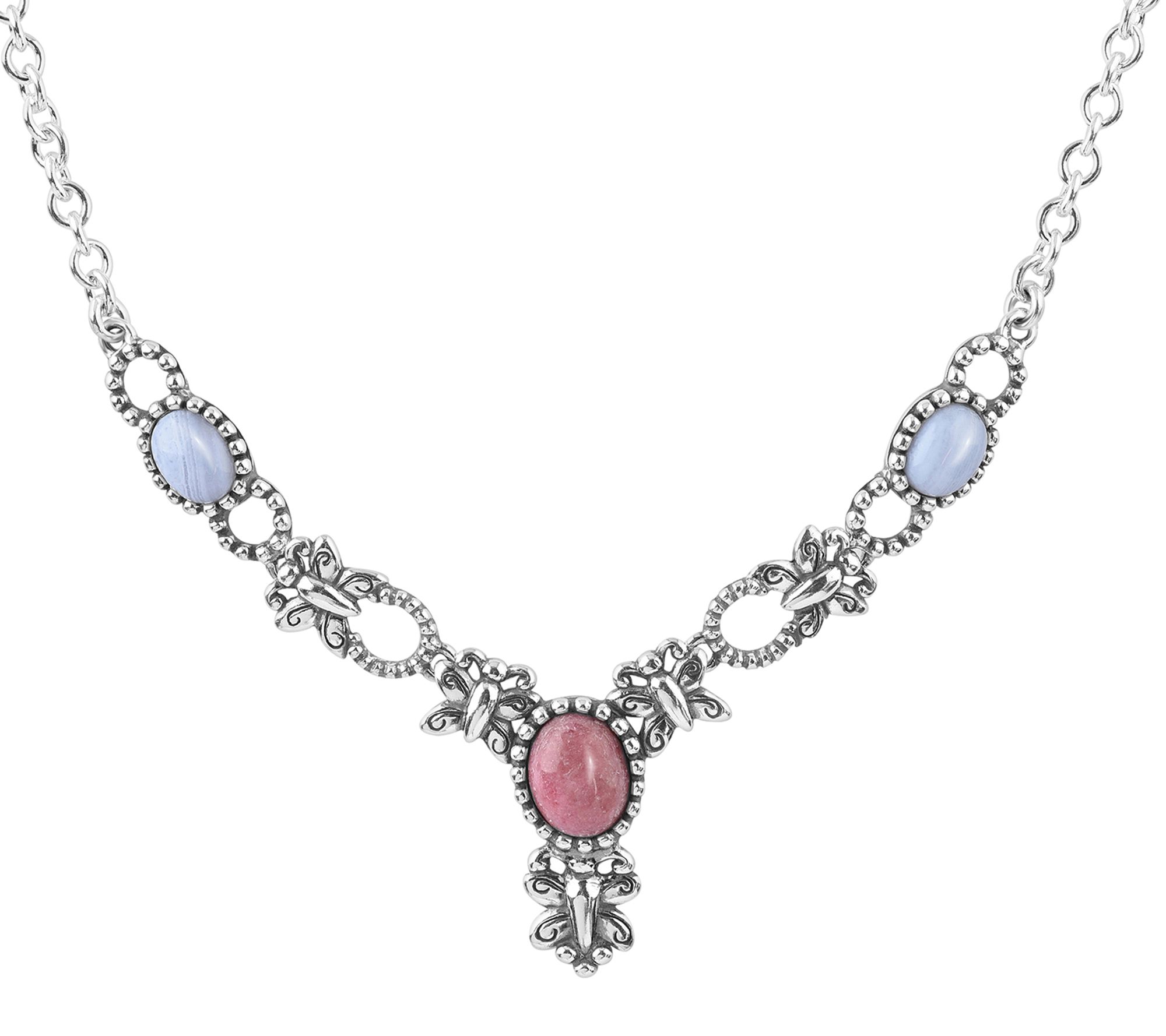 American West Sterling Multi-Gemstone Butter fly Necklace